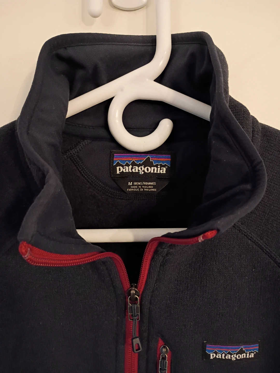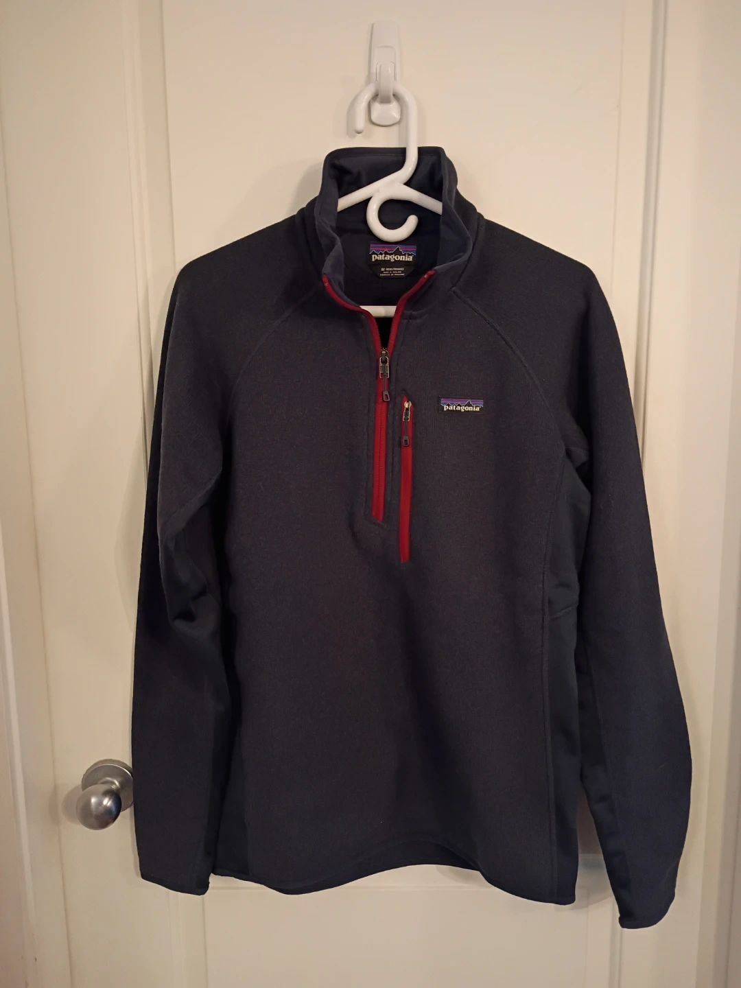 Selling a Patagonia Better Sweater 1/4 zip in a men's size medium. It's in great condition, colour is a dark navy with red accents.