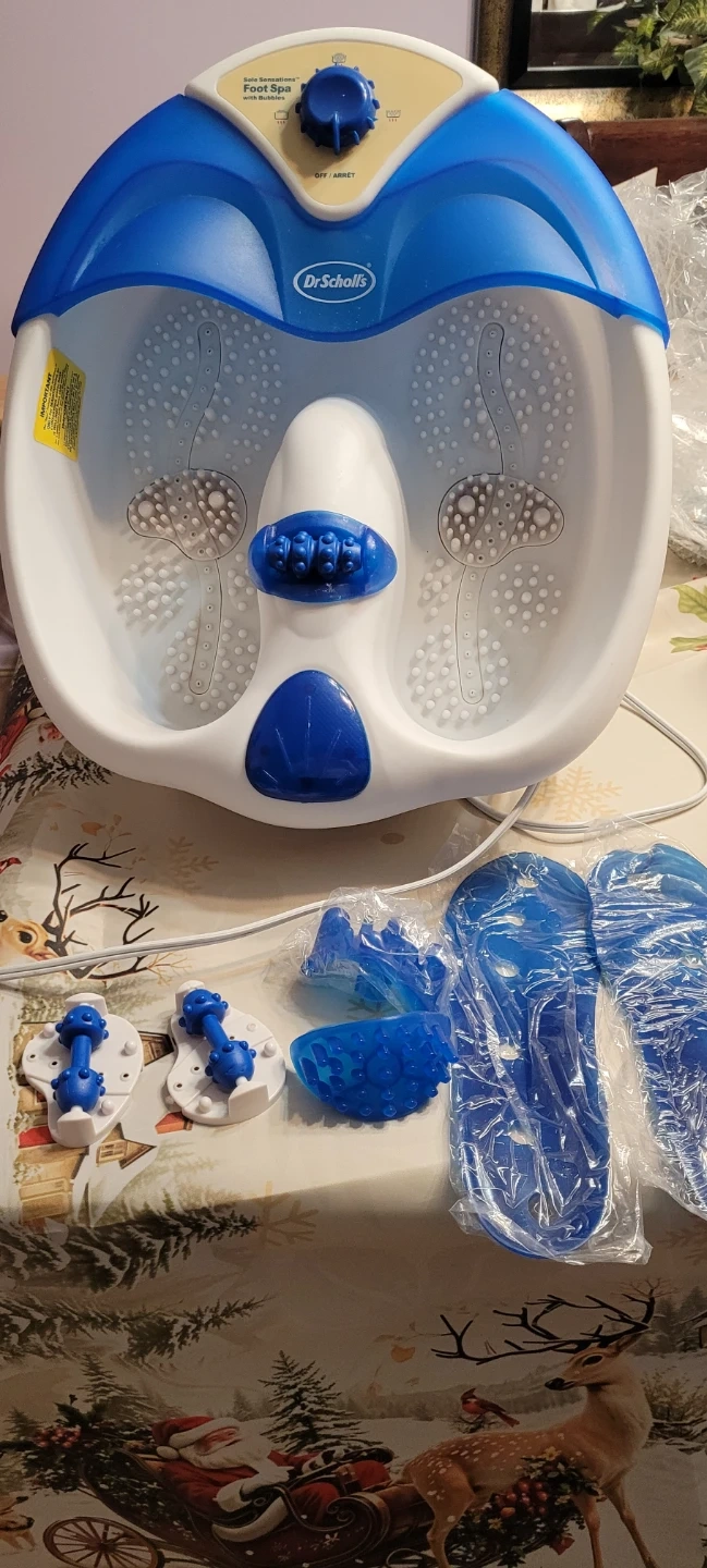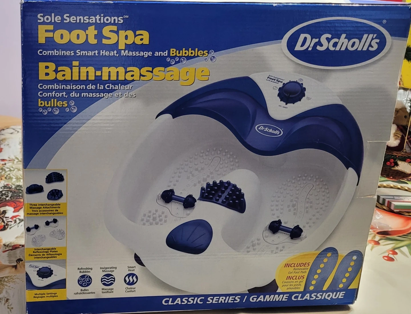 Selling a Dr. Scholl's Foot Spa from the Classic Series! It combines smart heat, massage, and bubbles for a relaxing experience. Comes with three interchangeable massage attachments and gel foot pads. Get ready to treat your feet!
