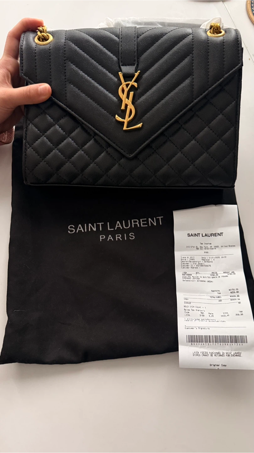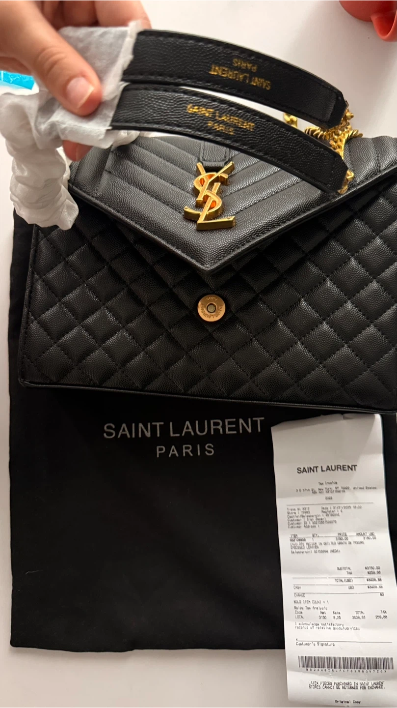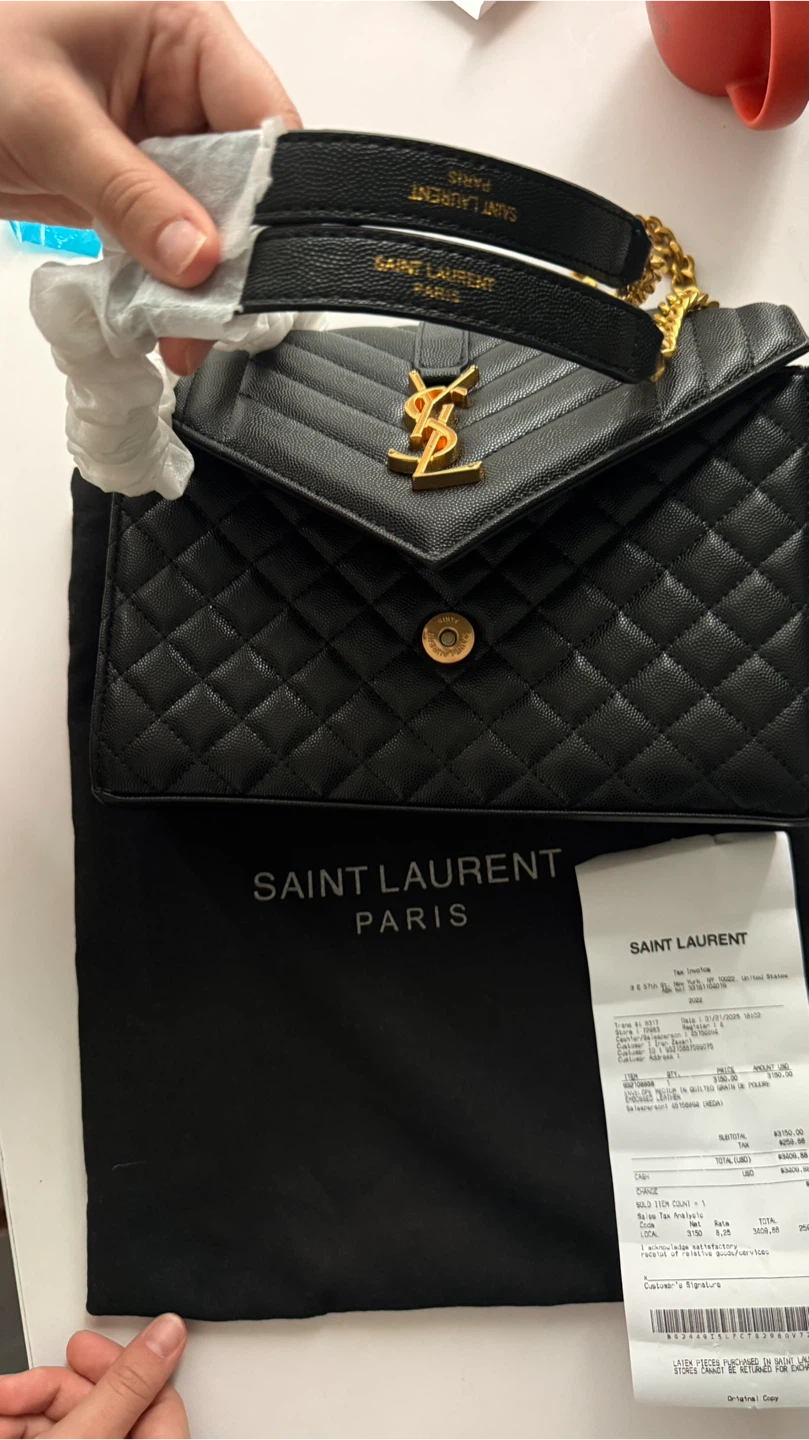 Selling a beautiful Saint Laurent Envelope bag in black leather. It's in great condition and comes with its original dust bag. Originally bought for $3409.00