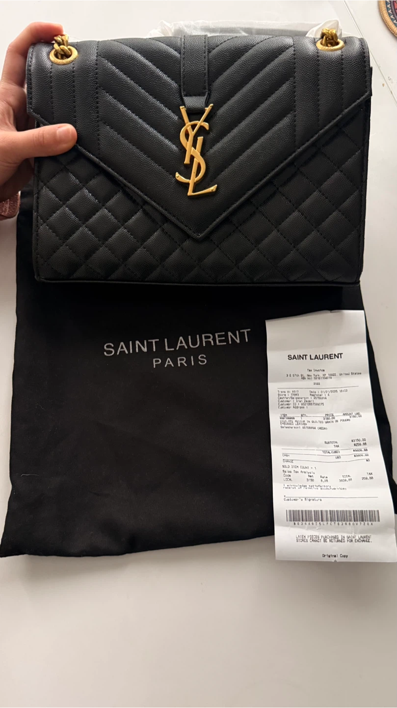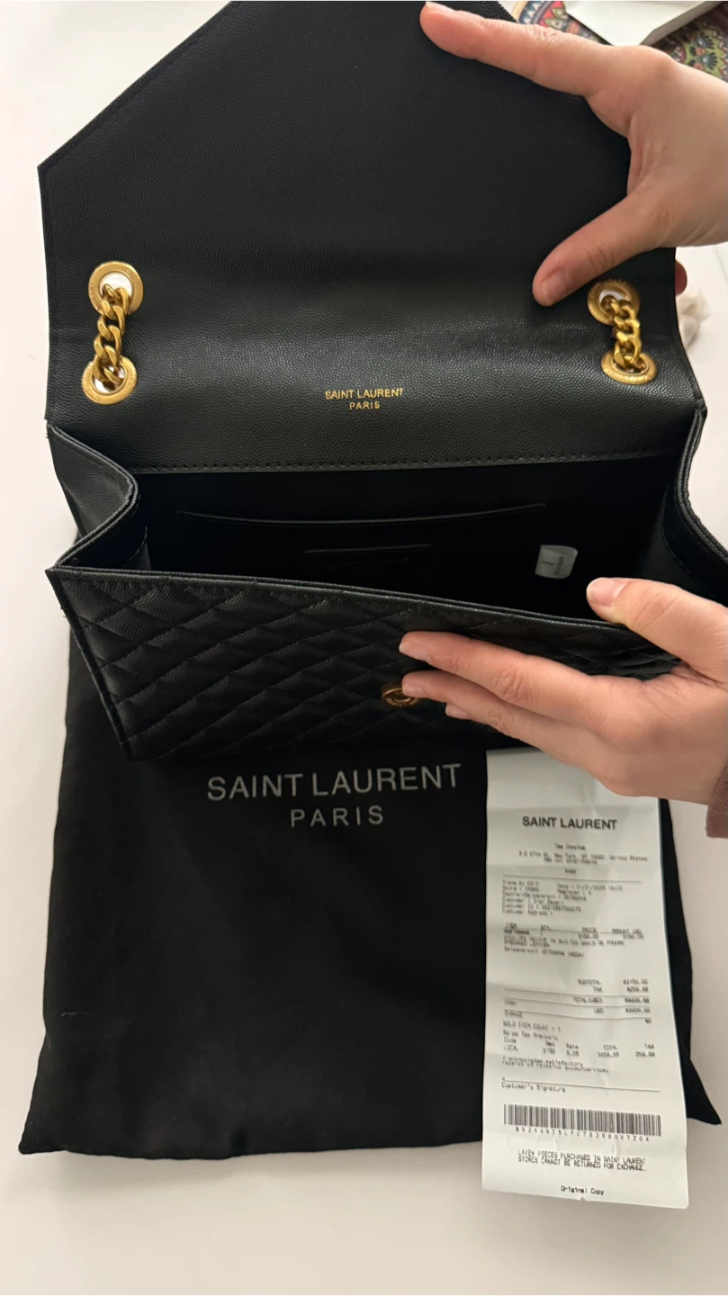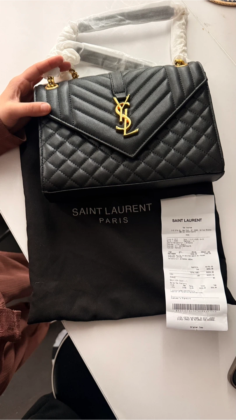 Selling a beautiful Saint Laurent Envelope bag in black leather. It's in great condition and comes with its original dust bag. Originally bought for $3409.00