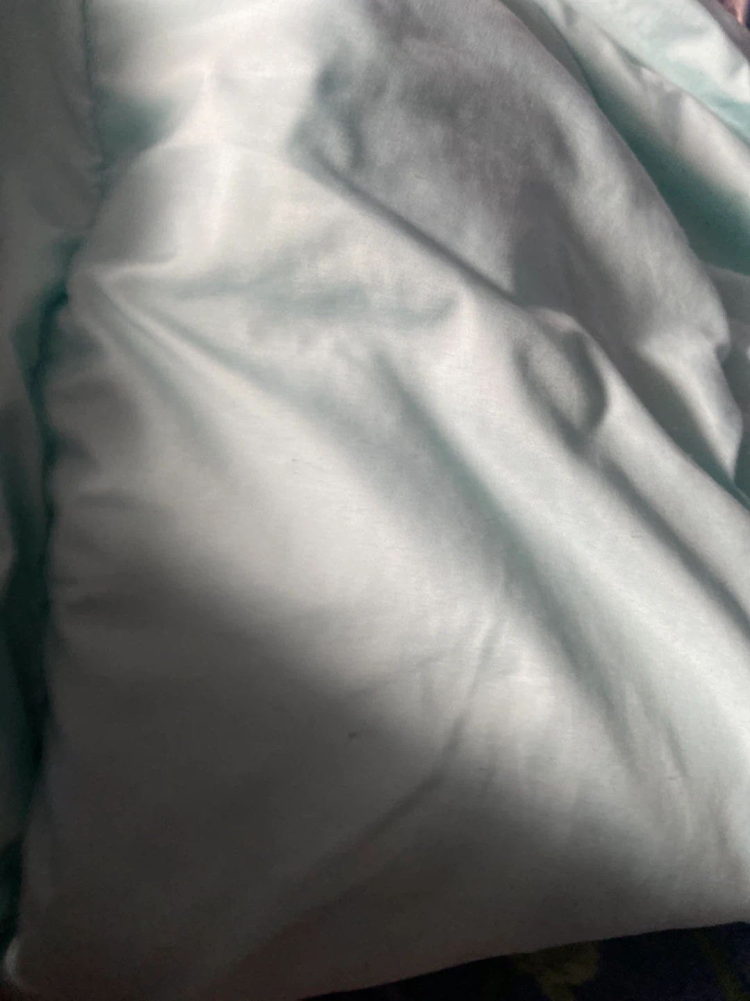 Selling a Stitch comforter. It features the character Stitch with pink flowers on a blue and white striped background. The other side is a solid light blue colour. It's in great condition!