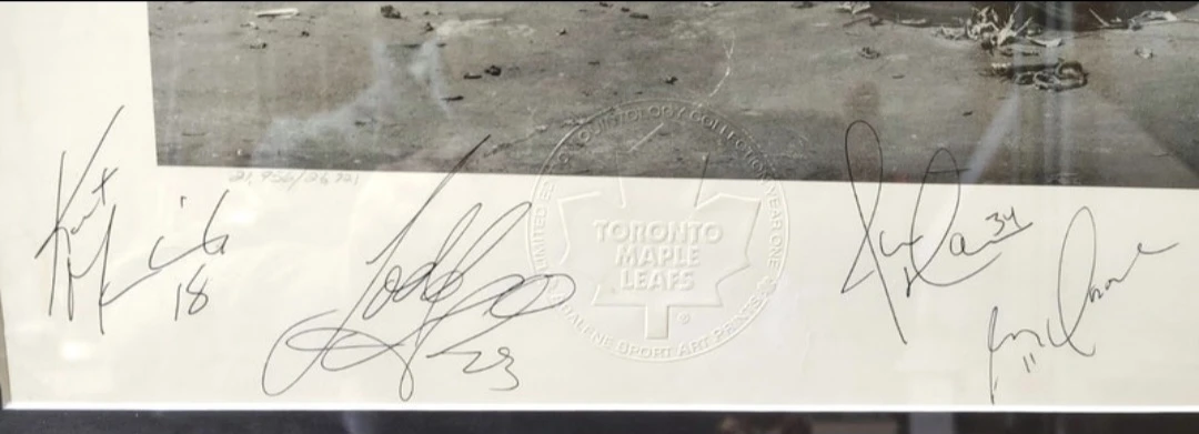 Toronto Maple Leafs PAT's GARAGE Quintology Framed L/E Print "GETTING IT GOING" AUTHENTIC SIGNATURES by WENDEL CLARK, TODD GILL, NIKOLAI BORSCHEVSKY, JAMIE MACOUN, GUY LAROSE and KENT MANDERVILLE signed in 1992