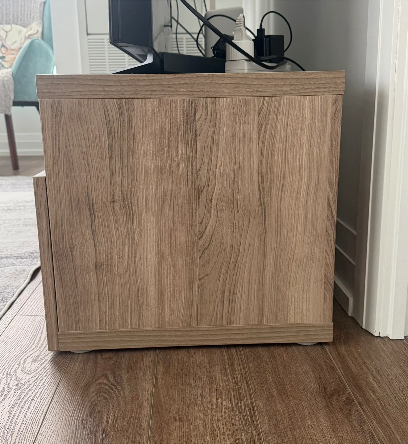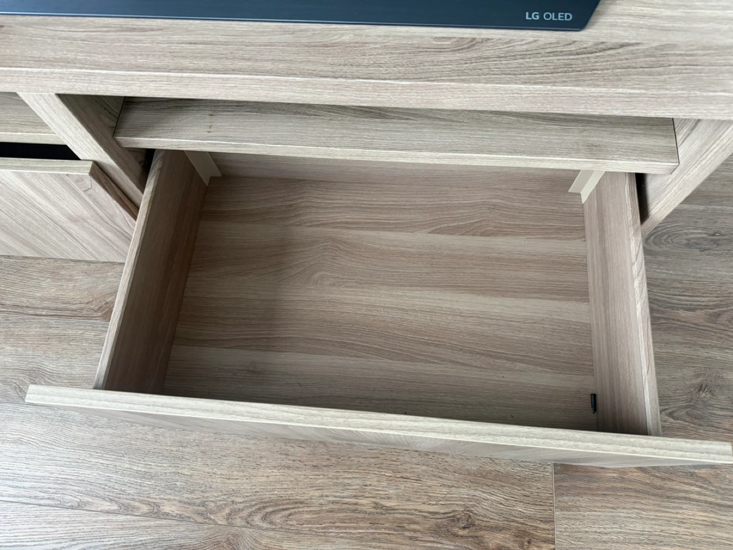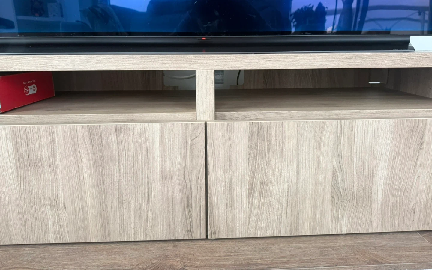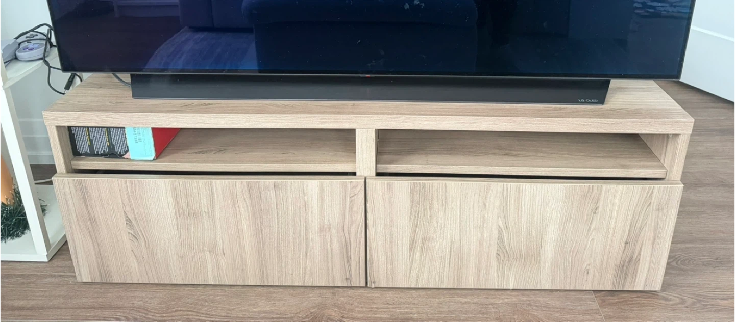 Selling a gently used wooden TV stand. It features drawers and open shelving for storage, perfect for organizing your media devices and accessories. It's in great shape and ready to hold your TV!
