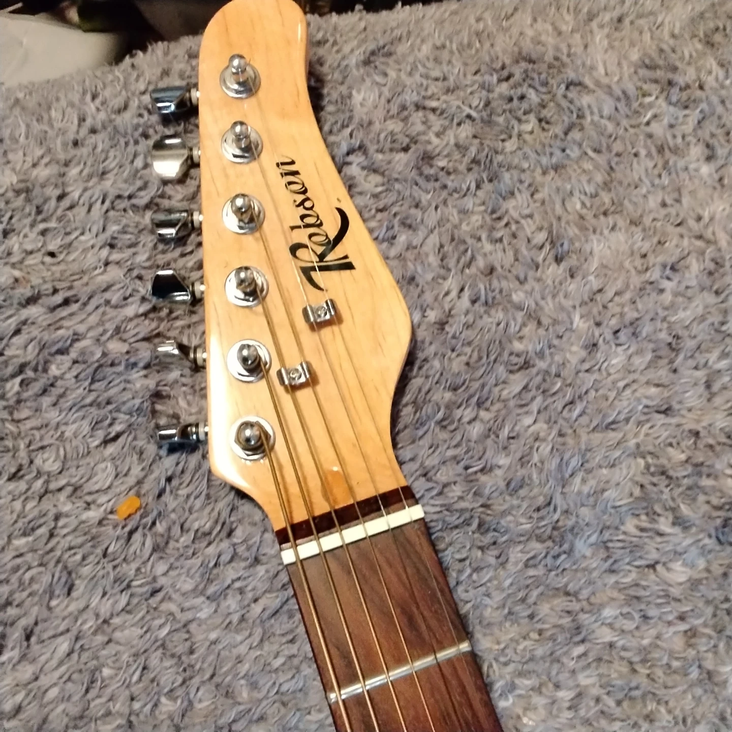 Selling a Robson electric guitar in a classic black Strat style. It's in good condition and ready to play! Perfect for beginners or anyone looking for a reliable electric guitar.