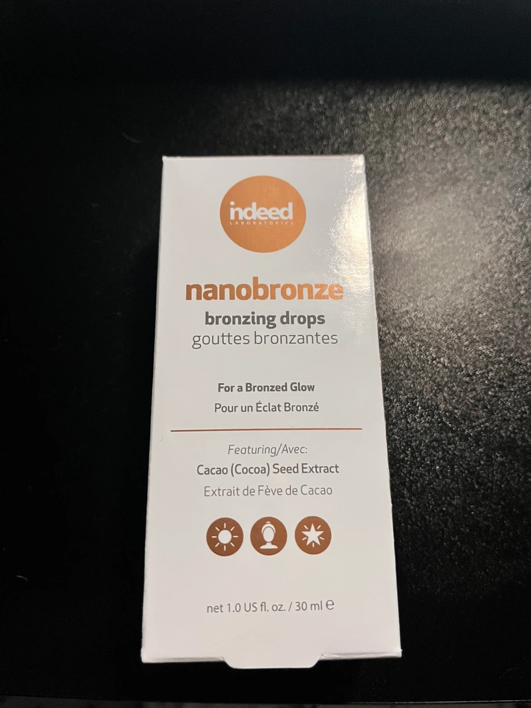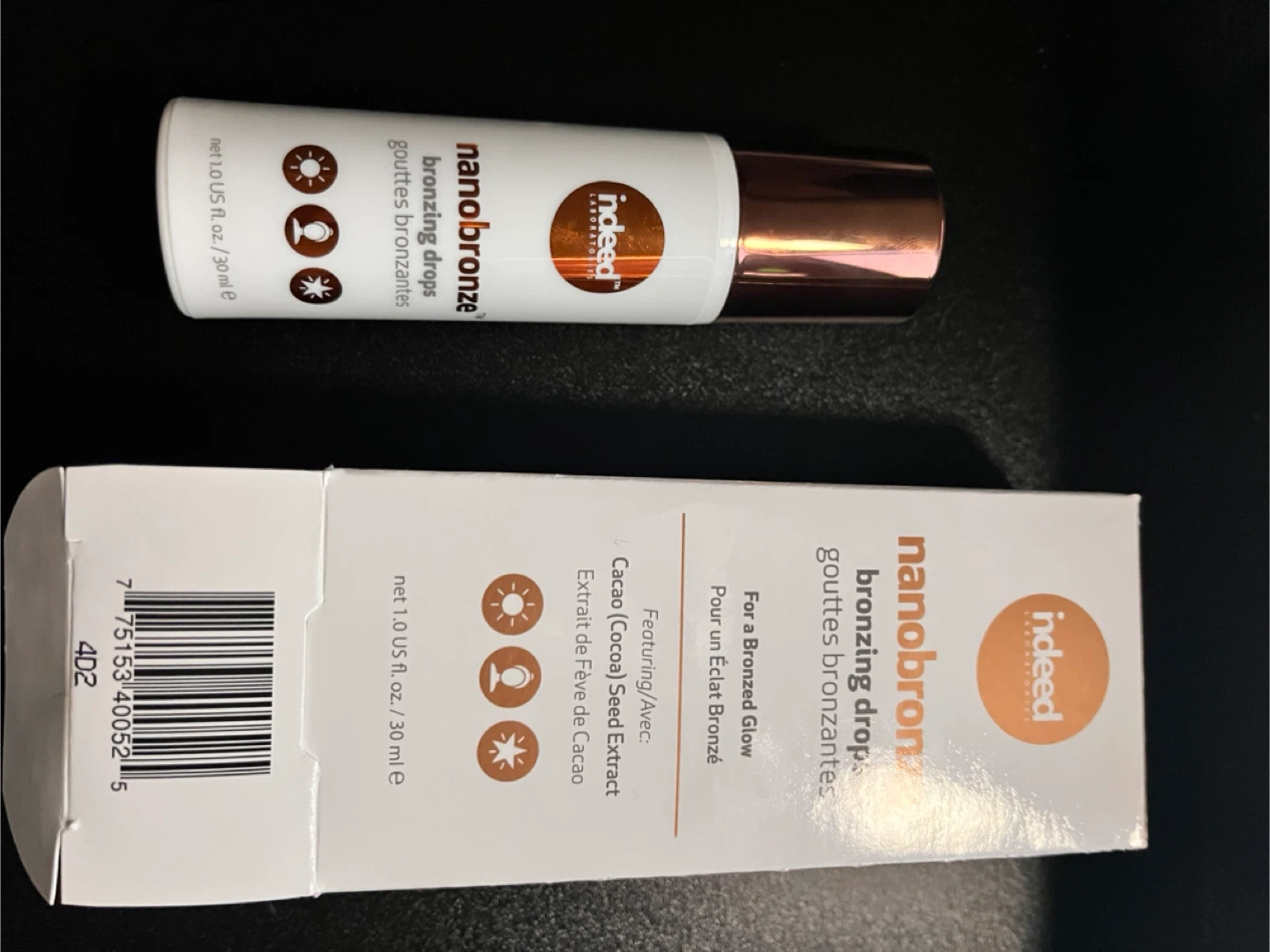 Liquid bronzing drops from the brand Indeed Labs. Only used one drop, so essentially full.