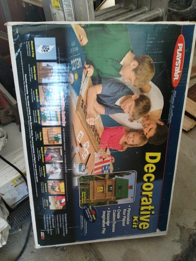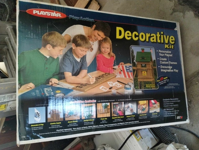 PLAYSTAR PlayAction Decorative Kit MADE IN USA BNIB PS 7980 Bring Home even More Fun and Transform your Children's Play Set with our Unique and Innovative Decorative Kit. Transform Your Children's Swing Set! New and Exclusive Decorative Kit allows you to Personalize your Play Set, Create Custom Themes and Encourage Imaginative Play. Includes: Decorate-A-Flag, Magnetic Chalkboard, Accent Dormer, Sunlight Window, Stencil Set, Flower Box, Sand Box Seat, Country Cupola, and Design-A-Plaque. Magenetic Chalkboard, Country Cupola, Sunlight Window, Accent Dormer, Flower Box, Decorate-A-Flag, Sand Box Seat, Design-A-Plaque and Stencil Set. Personalize your Playset. Create Custome Themes. Encourage Imaginative Play. Get Entire Family Involved VIEW MY OTHER ADS!!!