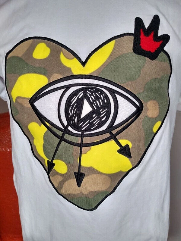 Bleeker and Mercer Camo Heart Eye T-Shirt Very Rare and Hard to find! Men Size L 95% Cotton 5% Spandex Hand Wash Cold Water - Do Not Wring Or Twist - No Bleach - Lay Flat To Dry Bleecker & Mercer Well made and made to last. Brand new, never worn. No original tags