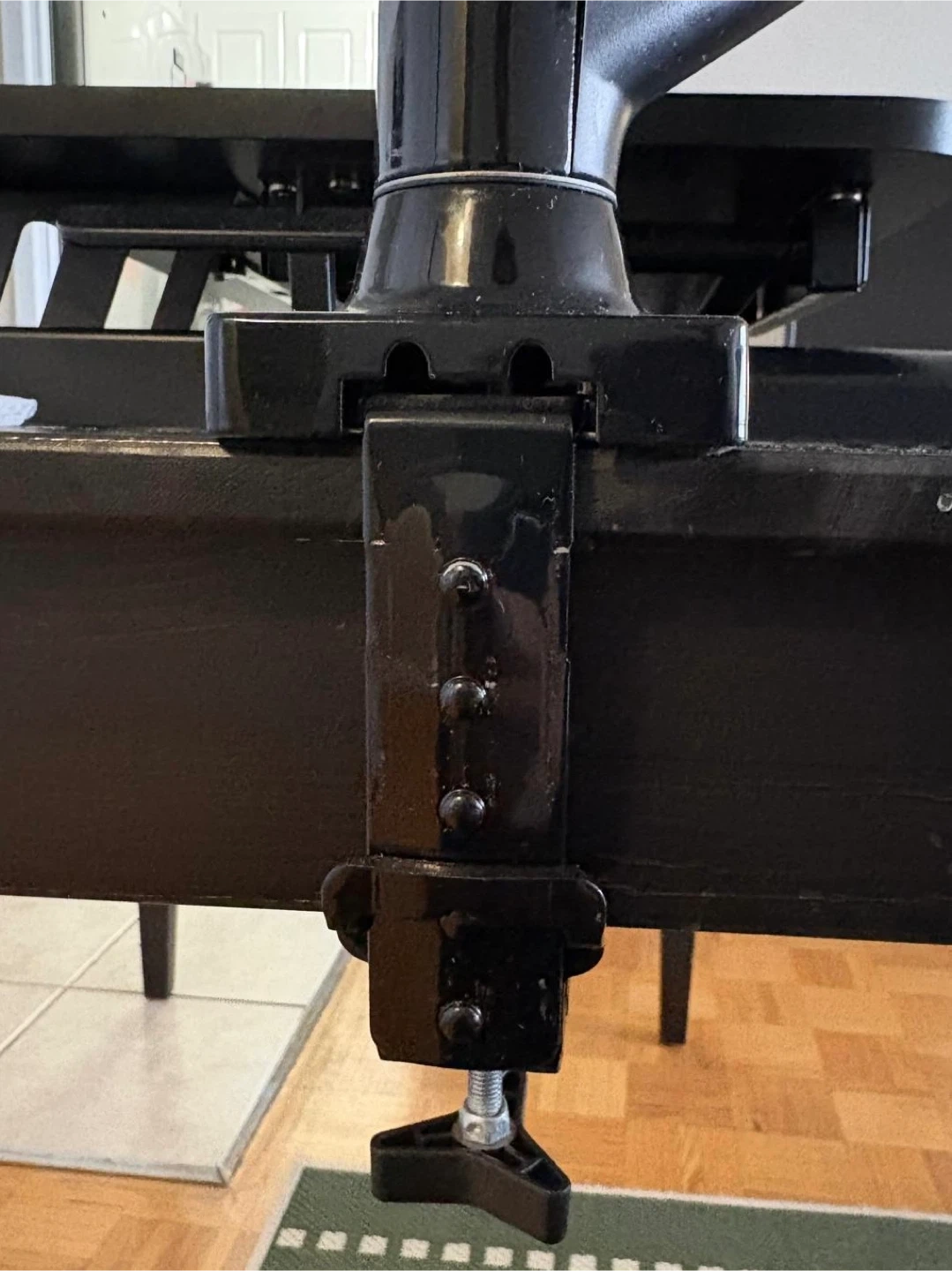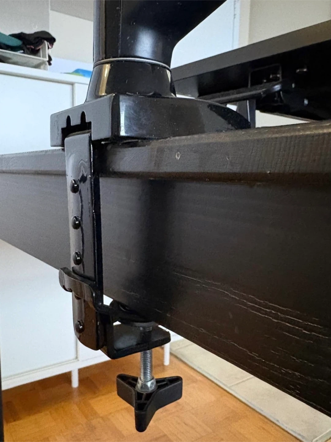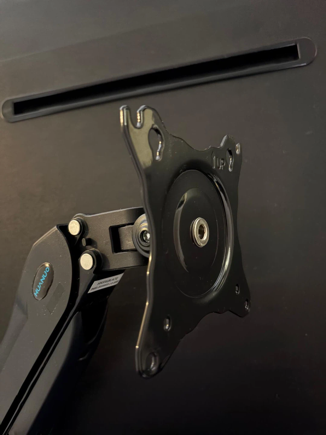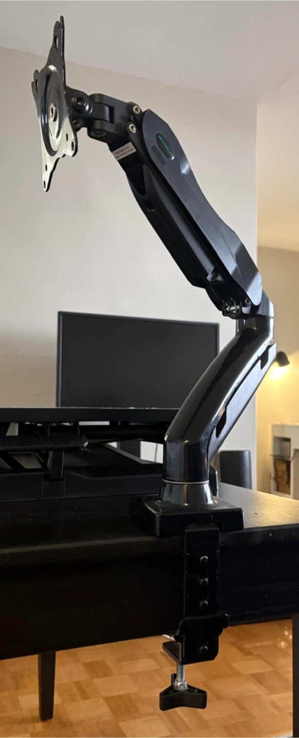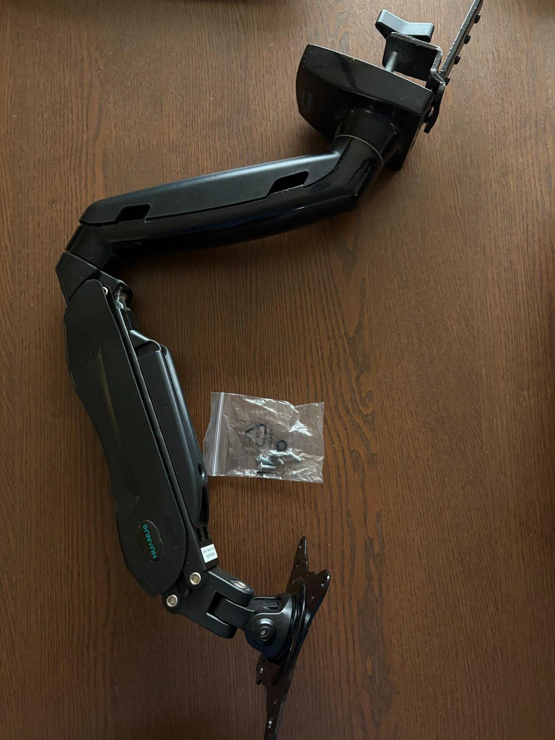 Selling a HUANUO monitor mount in black. It's in great condition and ready to help you optimize your workspace! Perfect for creating an ergonomic setup and freeing up desk space More info: https://a.co/d/9sdO3EC