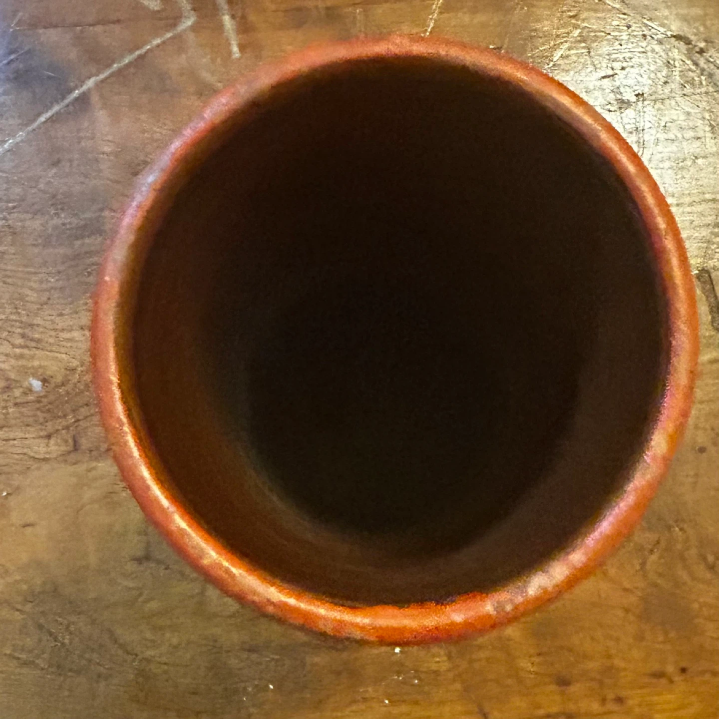 Vintage, Italian inspired, landscape, cylinder vase, red pottery, home décor.