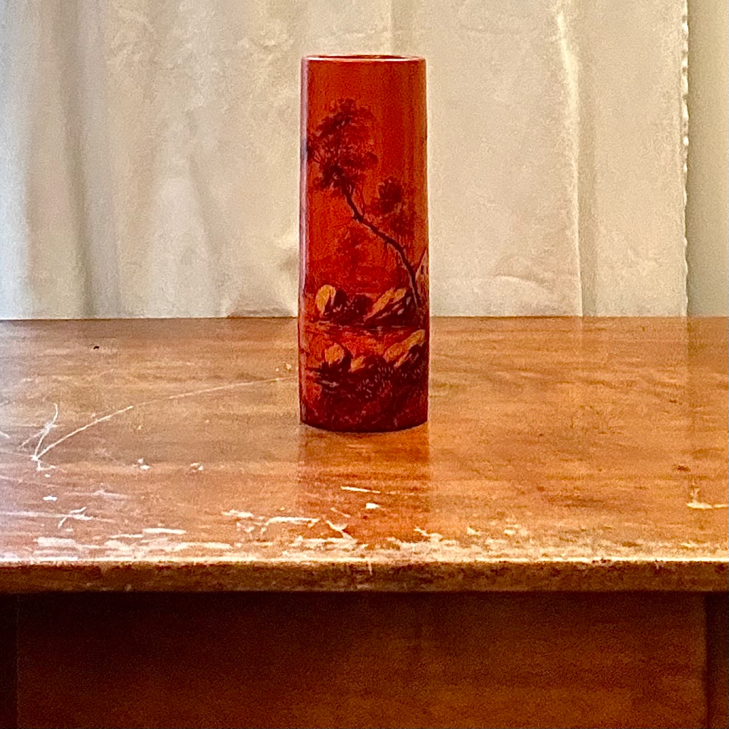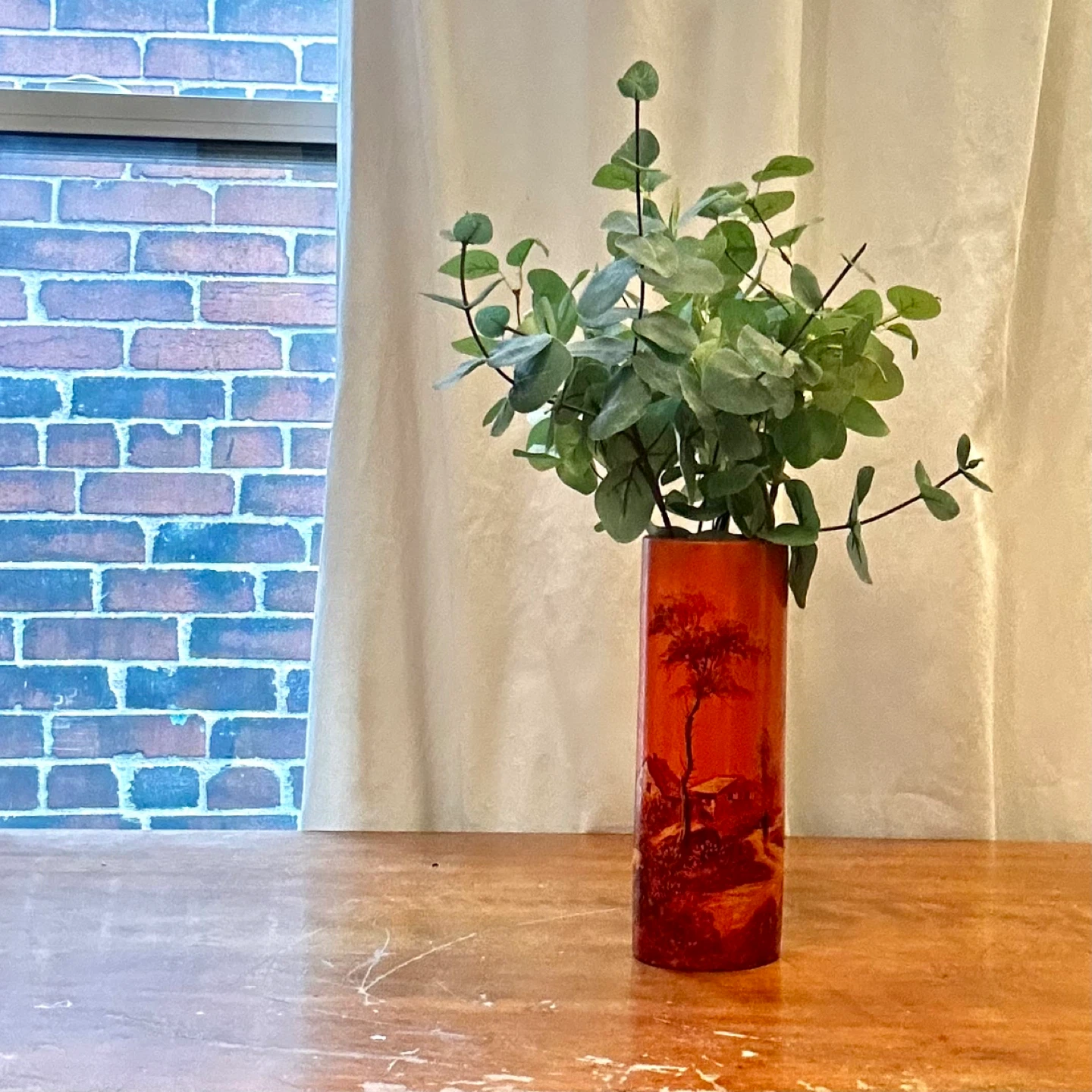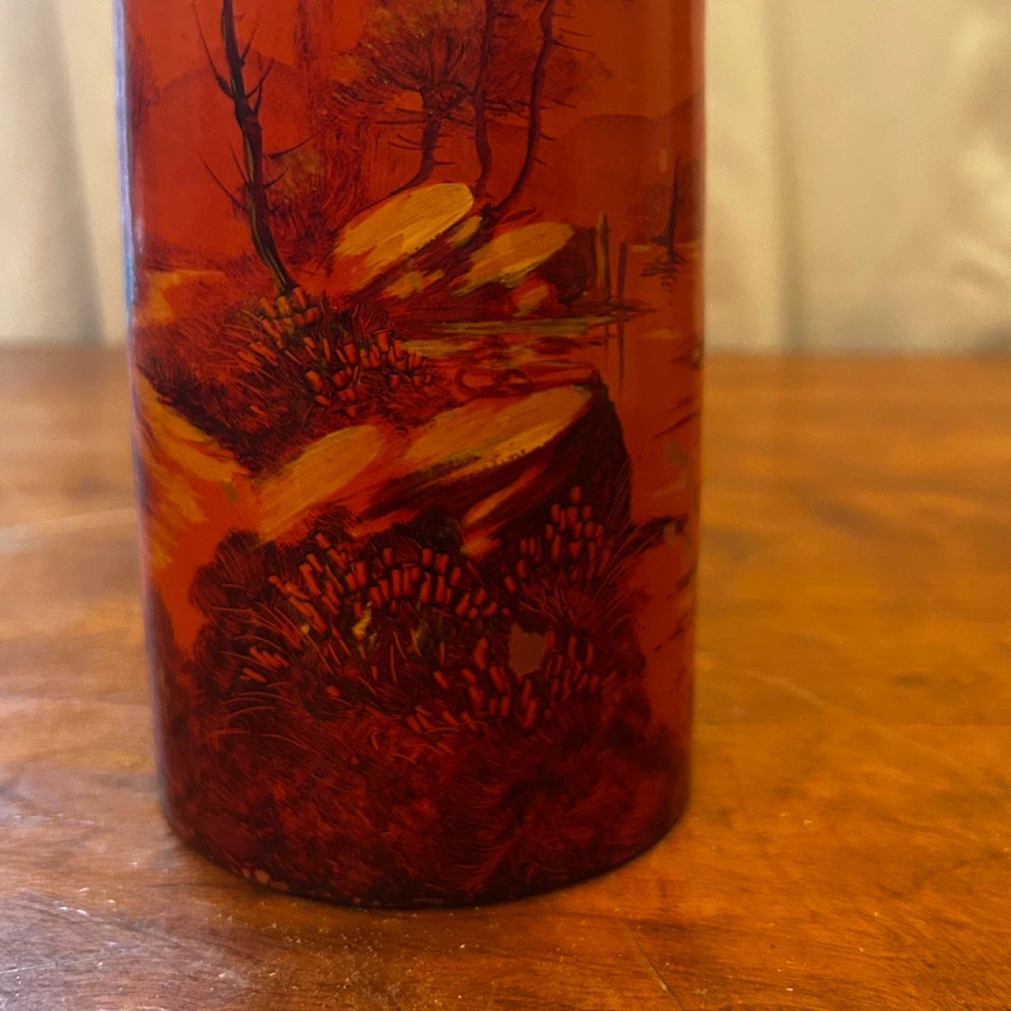 Vintage Italian Landscape Cylinder Vase, Red Tones
