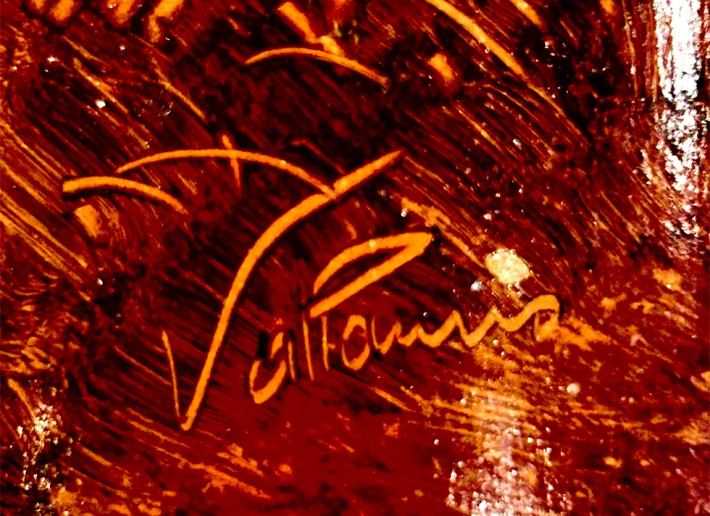 This is a solid, substantial vase with a glossy finish and a warm, dramatic color palette that works well in both modern and traditional interiors.