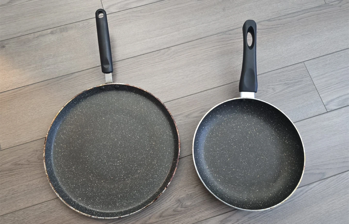 Selling a Prestige Omega Deluxe set, including a tawa (30 cm diameter) and a fry pan (24 cm diameter).