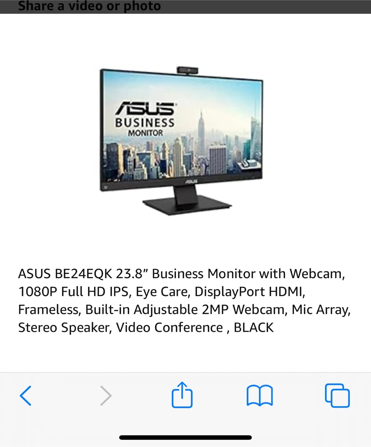 Selling an ASUS BE24EQK 23.8" business monitor in black. It features: