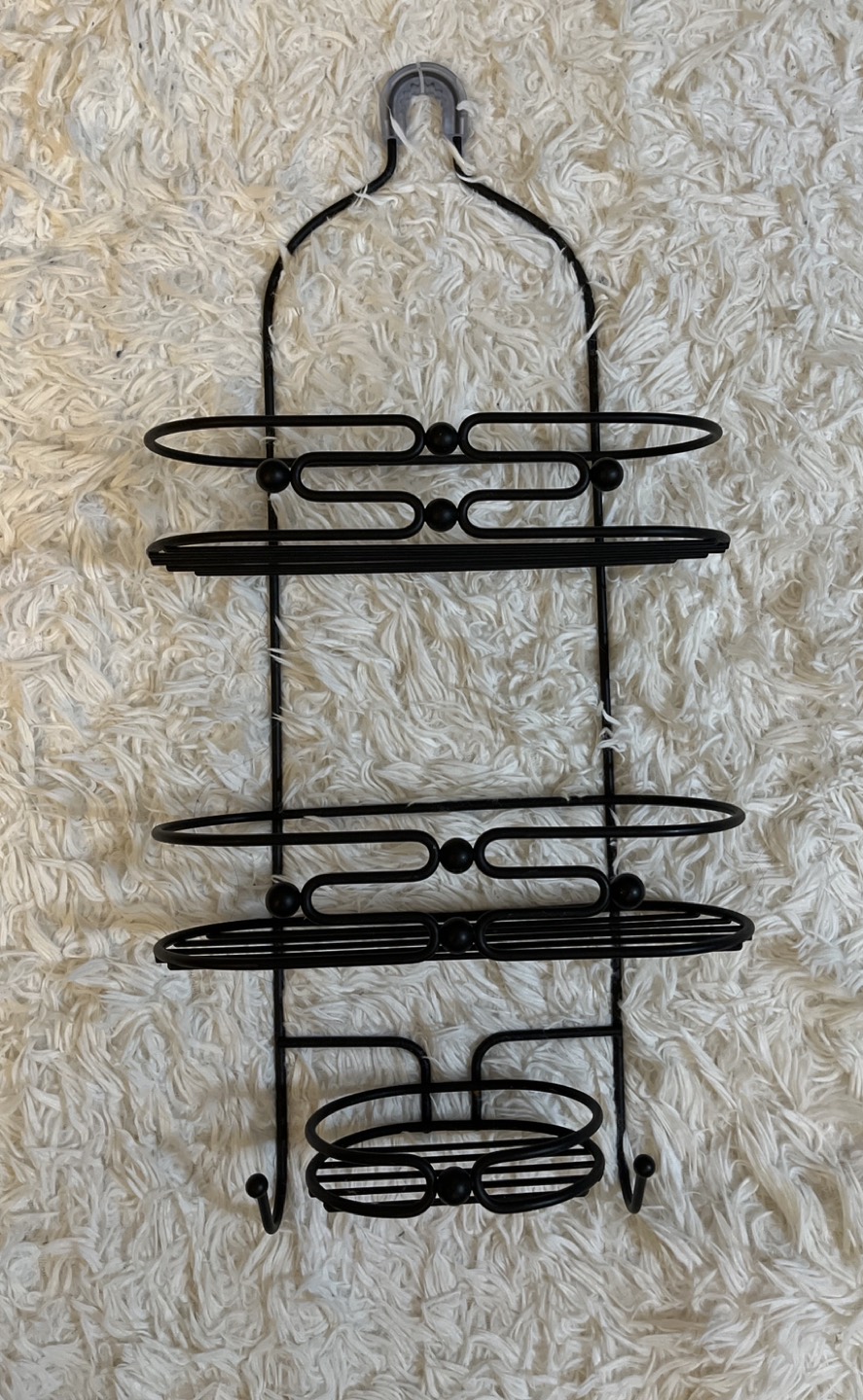 New unused shower caddy Powder black finish Sturdy metal frame