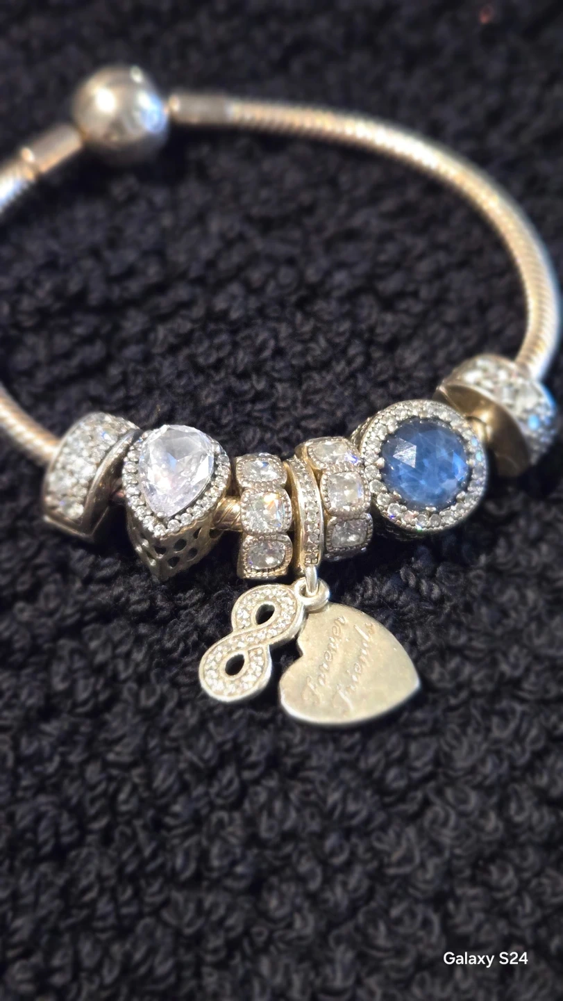 Selling a beautiful 2 Pandora bangle bracelets! It comes with a 7 charms to get you started. The bracelet comes in its original box and gift bag, perfect for gifting or keeping it safe. It's in great condition and ready to wear!