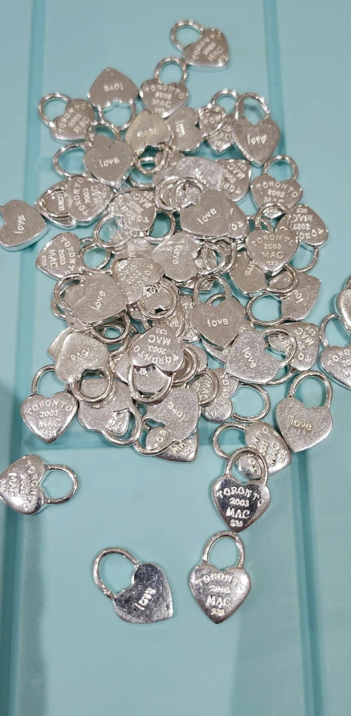Selling a collection heart lock charms. They are silver and feature the word 'love' and 'Toronto 2003 MAC'. Great for adding to a necklace or bracelet! 925 plated 2 each take all