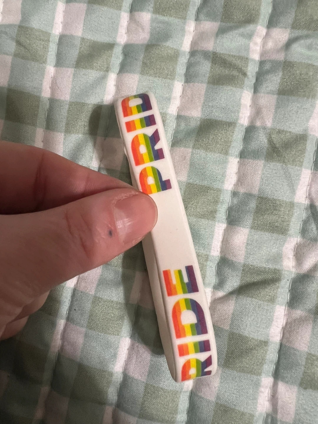 Buy & SellPride Rubber Band BraceletPride Rubber Band Bracelet$1I'm selling a Pride rubber band bracelet. It's in good condition and has the word "PRIDE" in rainbow colors. Perfect for showing your support!BrandPrideWHERE TO MEET30th Ave and 38th StView MapSELLERverifiedStefanyAstoria1000+144 reviews0 chats·0 favorites·8 viewsSEND CHAT TO SELLERHi Stefany! I’m interested in your listing.Hi Stefany! I’m interested in your listing.Get the Karrot app to chatSign In to chat