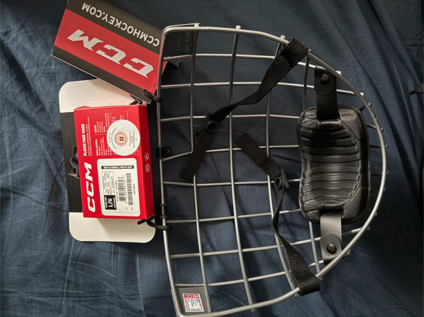 Selling a brand new CCM Player Facemask Cage! It's size L/G, and it comes with all the original parts and packaging. Meet up at Carson Graham Secondary School