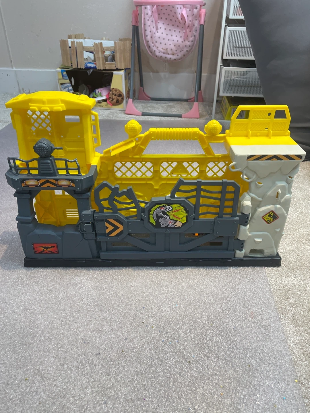 Selling a Jurassic World dinosaur gate playset! It's in great condition and ready for a new dino adventure. The playset is mostly yellow and gray, with some cool Jurassic World details. Perfect for any young dinosaur enthusiast!