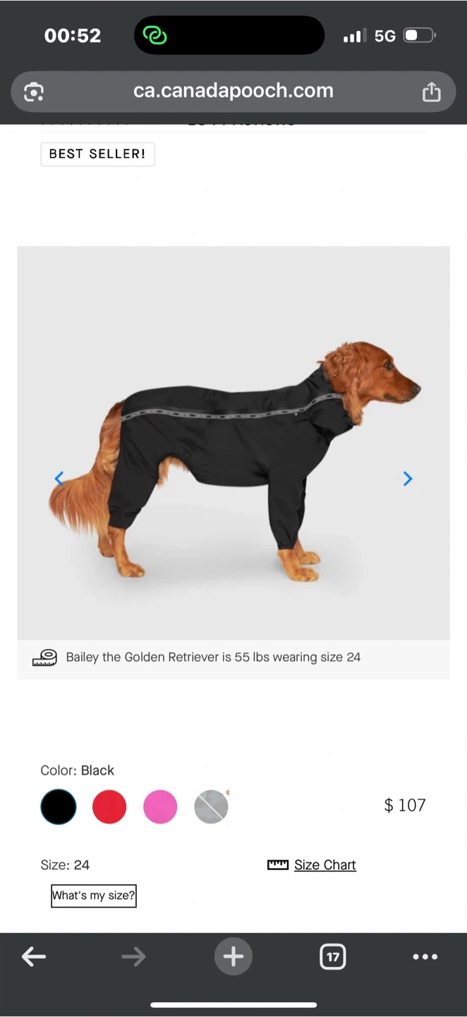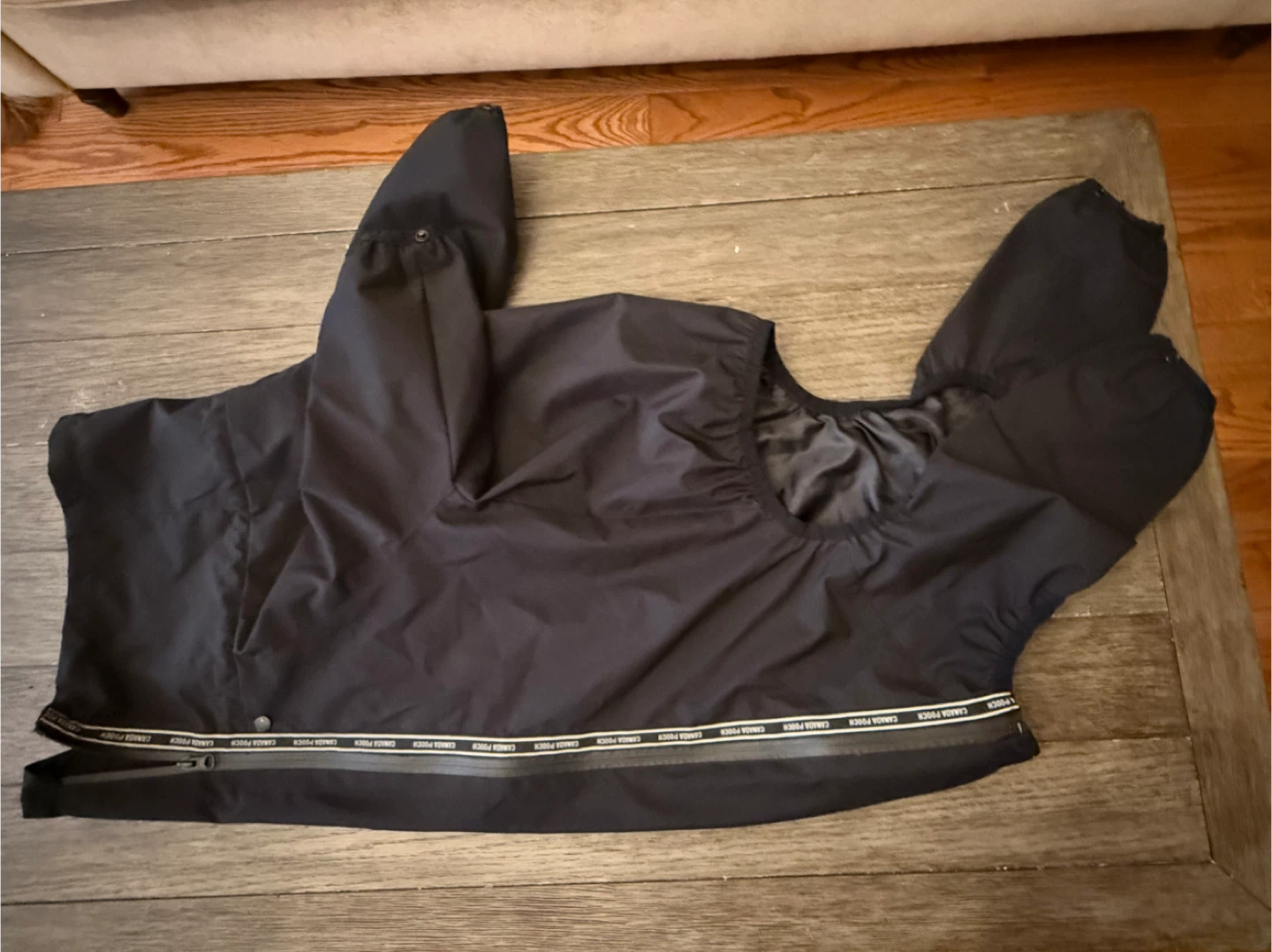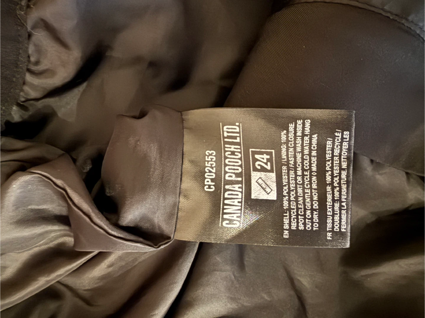 Selling a Canada Pooch dog raincoat in size 24. It's made of 100% polyester, so it's easy to clean. Perfect for keeping your furry friend dry on those rainy walks!