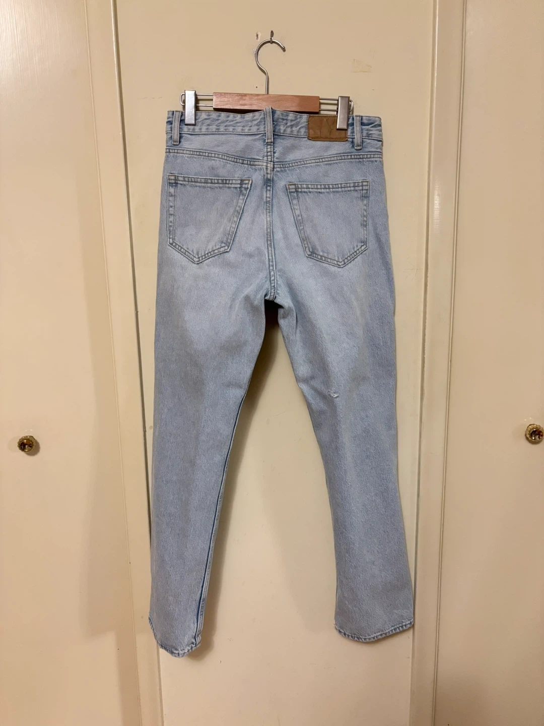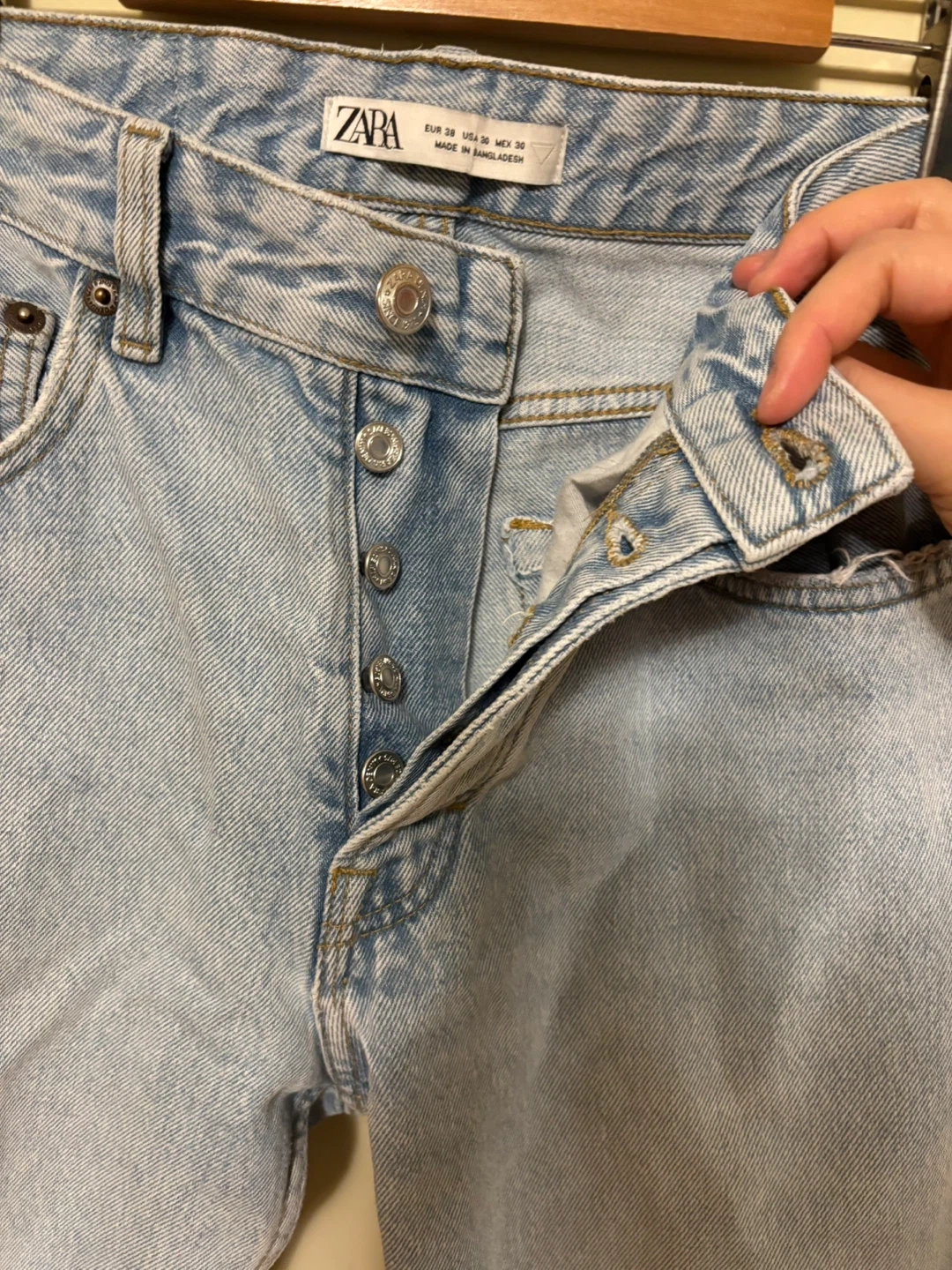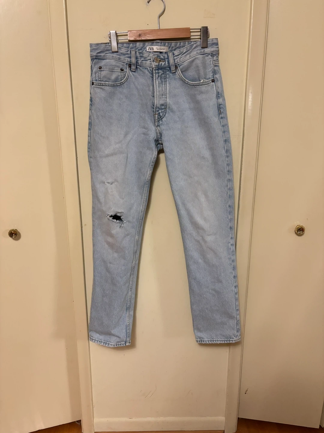 Selling a pair of Zara Mom Fit Jeans. They are a light wash denim and in good condition. The size is W30 Perfect for a casual look!