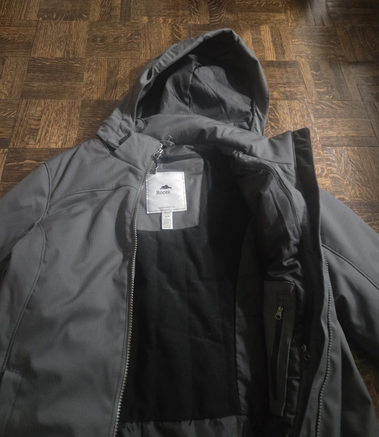 I'm selling a Roots women's winter coat in a lovely grey colour. It's in great condition and ready to keep you warm this winter! The coat features a hood and several pockets for your convenience