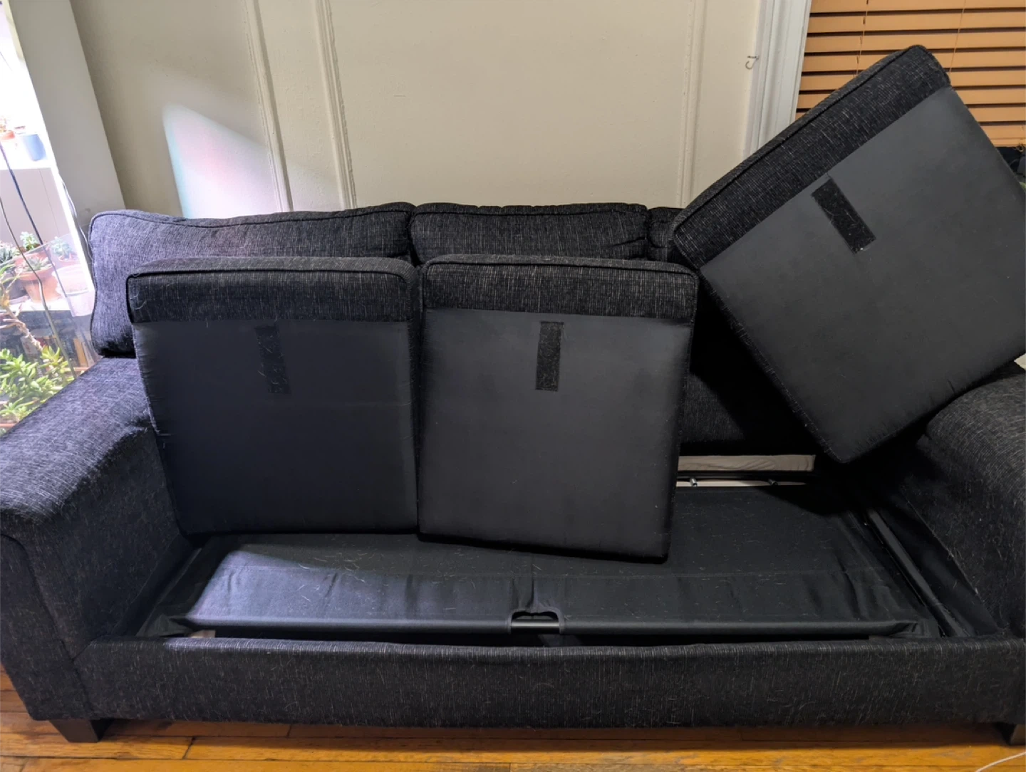 Dark Gray Three-Seat Sofa from Bob’s with sleeper