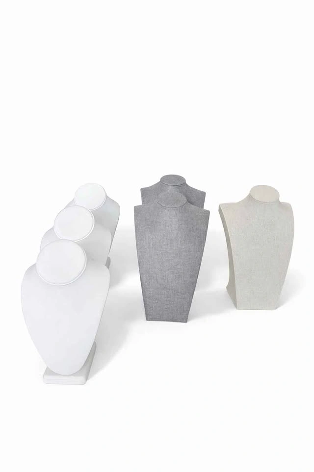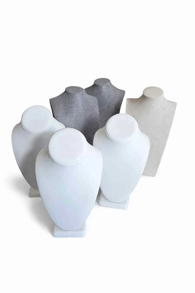 Jewelry Display Bust Set – Linen & White Leatherette (6 Pieces)