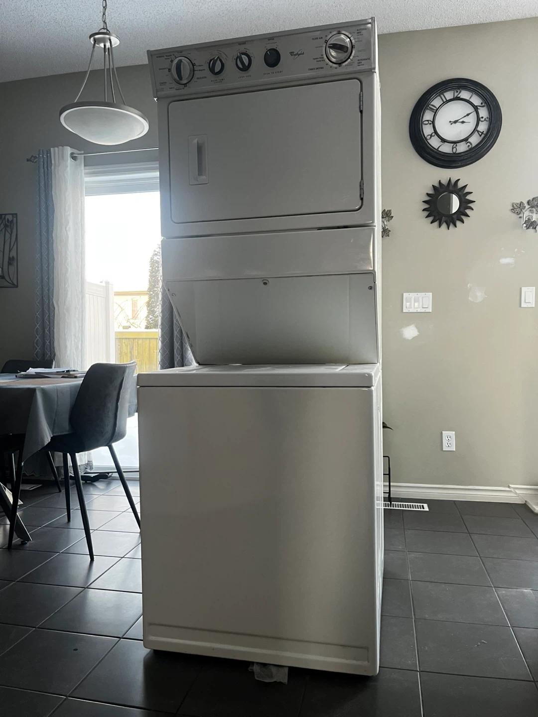 Selling a Whirlpool stacked washer and dryer unit! It's in great working condition and perfect for smaller spaces. A convenient laundry solution for any home