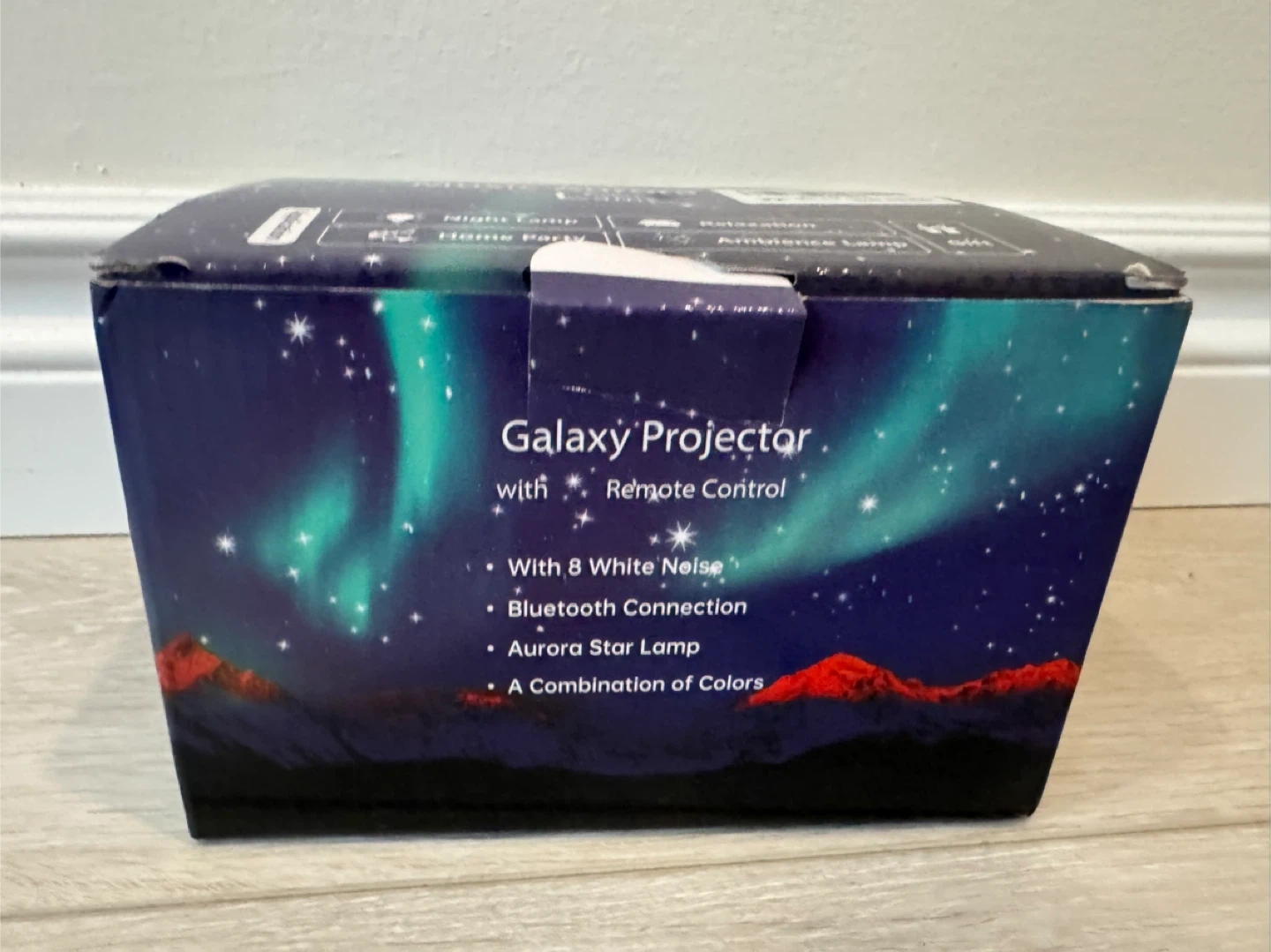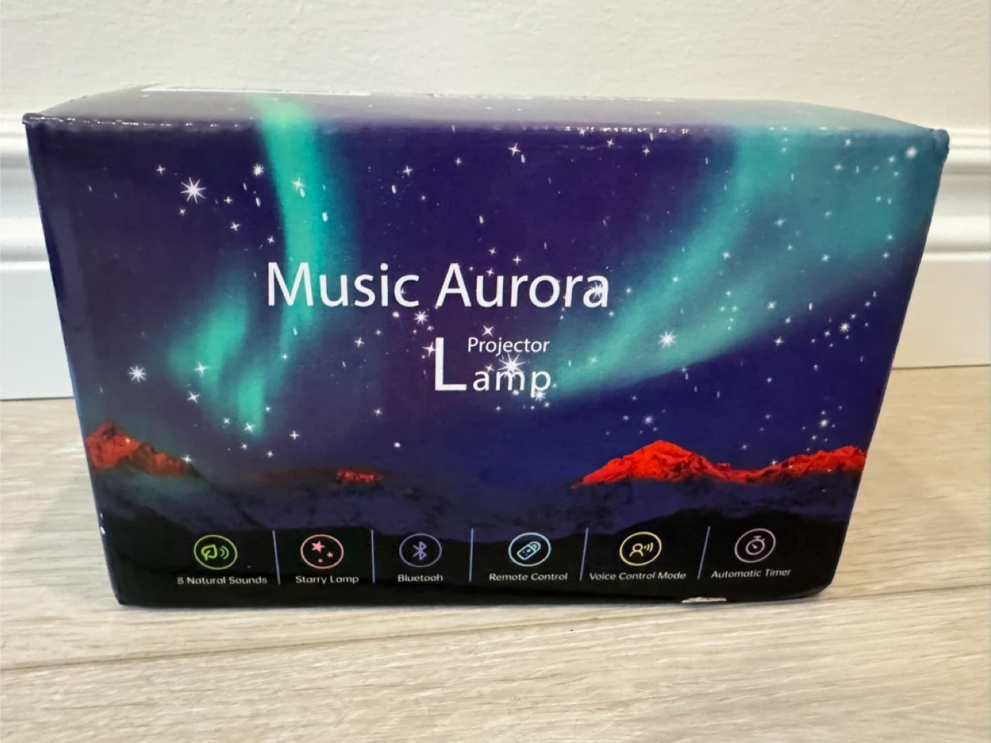 Selling a brand new Music Aurora Projector Lamp! It's still in its original box and ready to create a relaxing ambiance with its starry lamp feature. It also has 8 natural sounds and Bluetooth connection. Comes with a remote control, voice control mode, and automatic timer. Perfect for a night lamp or relaxation!