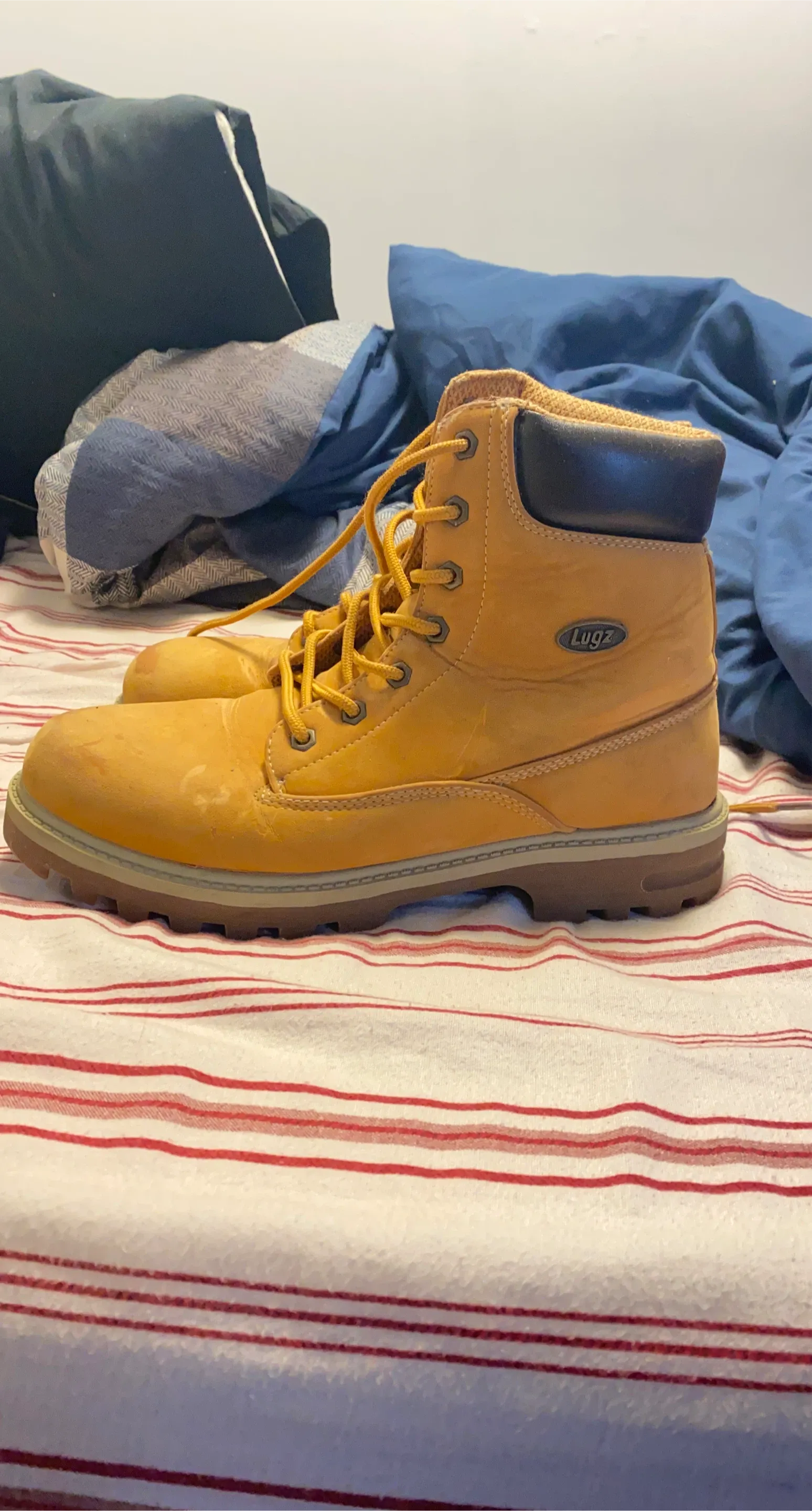 Selling a pair of Lugz Memphis men's boots in size 9 US. They are in good condition and ready for work or casual wear! The boots feature a man-made upper and synthetic sole.