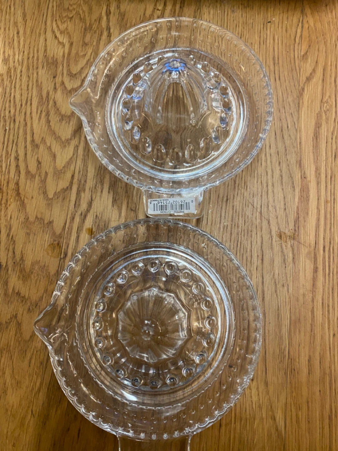 Giving away two glass citrus juicers.