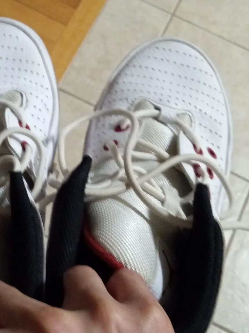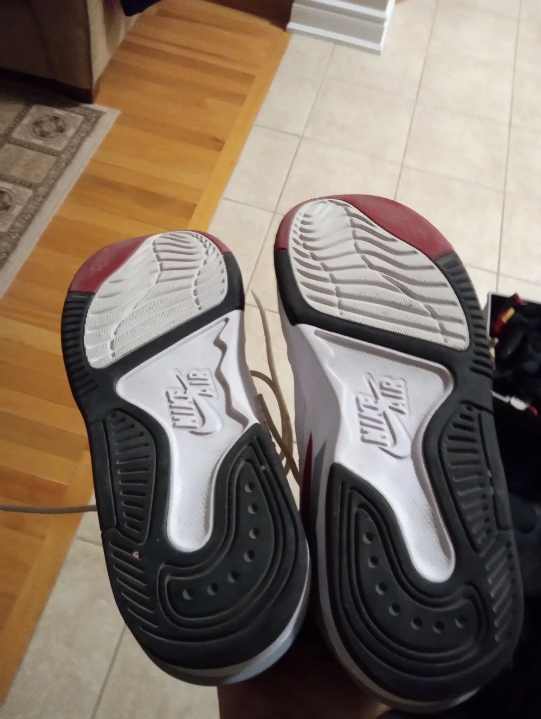 Selling a pair of Nike Air Max Impact 4 shoes in white and red! They're in good shape, the sole is ripping slightly, but still good for fashion and sports.