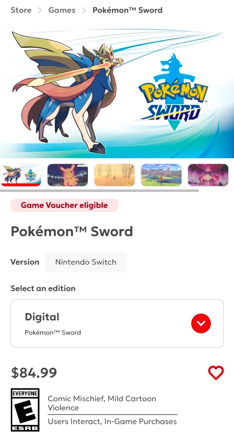 Buy & SellPokemon Sword [Nintendo Switch]Pokemon Sword [Nintendo Switch]$60Pokemon Sword Rarely played, Like new. Retails for $85 + tax Price negotiable!ConditionLike newWHERE TO MEETCooksville GO StationView MapSELLERlPCooksville11311 reviews0 chats·1 favorites·13 viewsSEND CHAT TO SELLERHi lP! I’m interested in your listing.Hi lP! I’m interested in your listing.Get the Karrot app to chatSign In to chat
