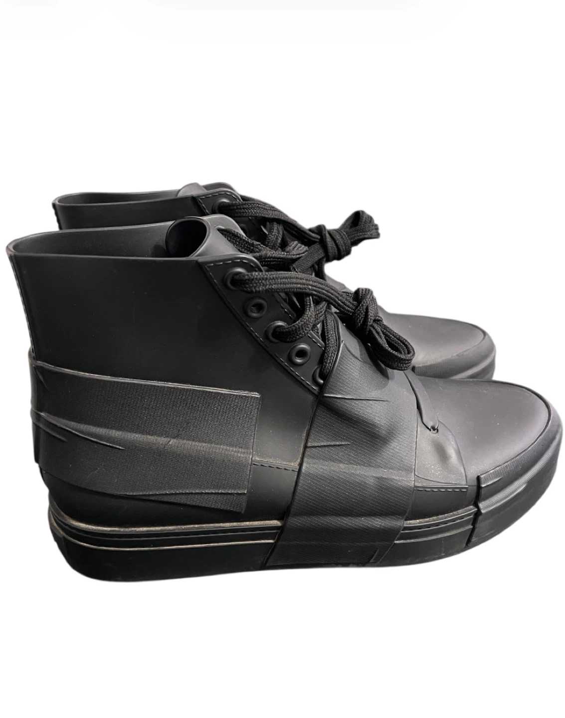 Stylish Melissa black platform ankle boots with a chunky sole and lace-up front. Made in Brazil from Melissa’s signature PVC material — durable, comfortable, and easy to clean.