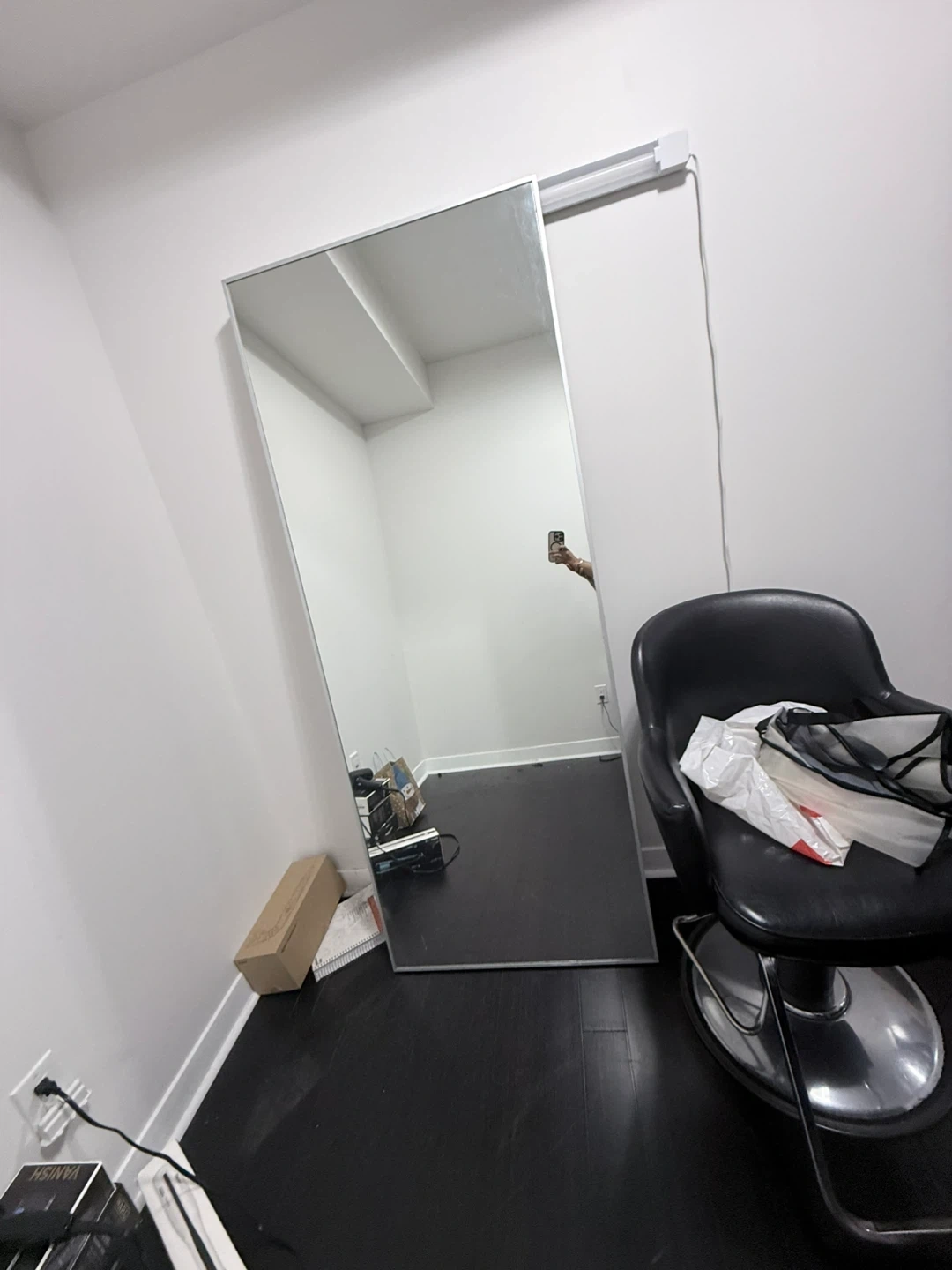 Selling a large mirror, perfect for a salon or studio space! It's in great condition and ready to be installed. It's a great addition to any space that needs a large mirror!