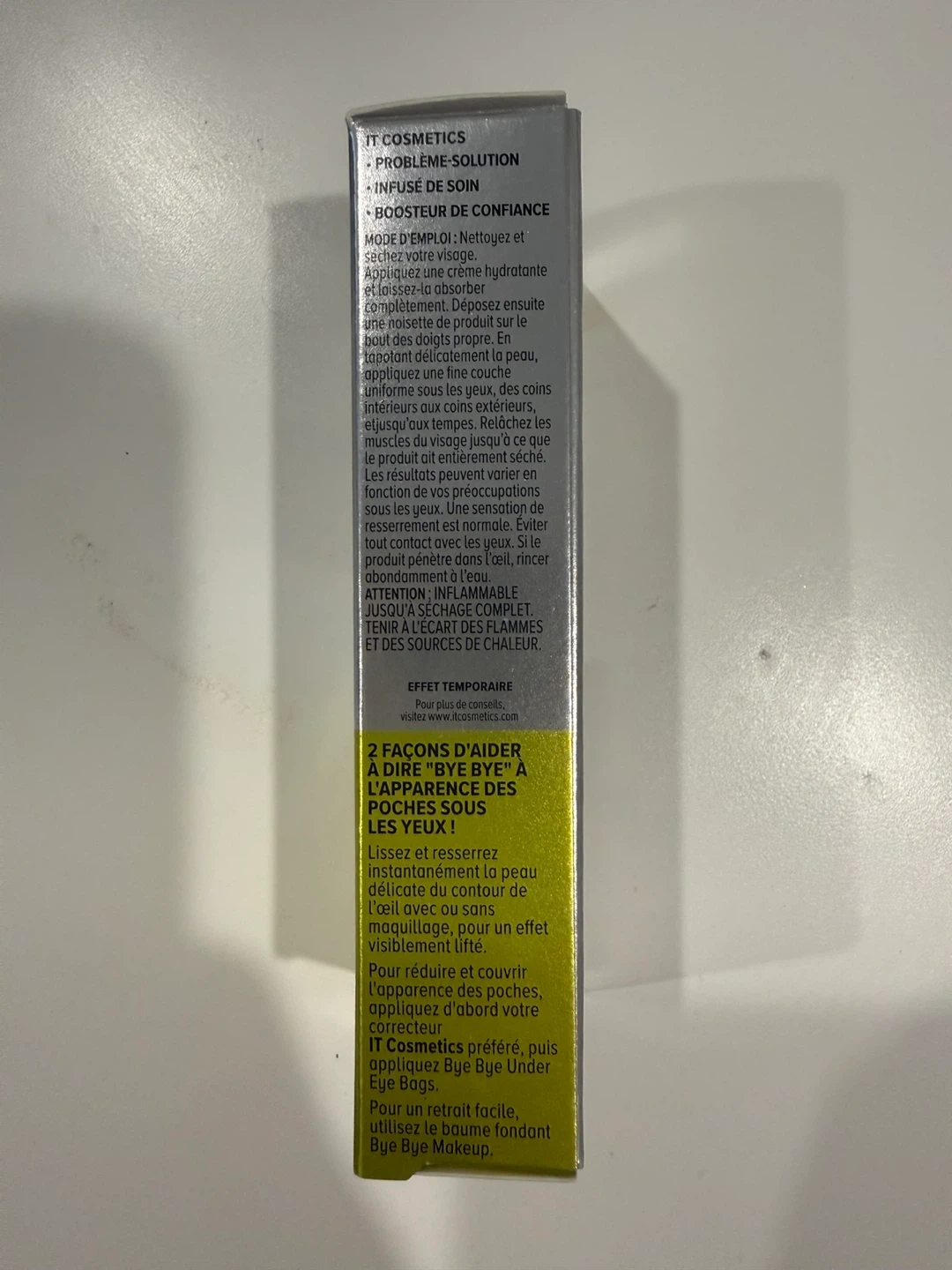 Selling a brand new IT Cosmetics Bye Bye Under Eye Bags rapid bag reducer! It's a 0.5 US fl. oz./15 ml tube. Depuff, tighten, and smooth the appearance of under eye bags with this product