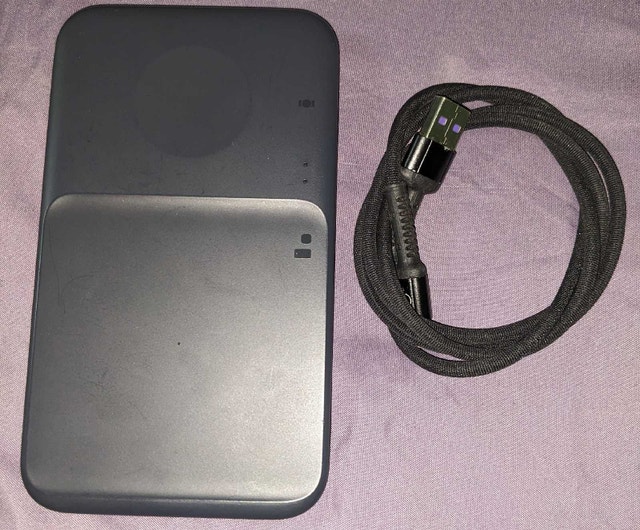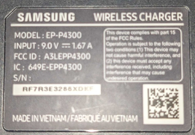 Condition: Excellent. Original Samsung wireless charging pad. Supports fast wireless charging for compatible Samsung Galaxy phones and other Qi-enabled devices. Slim, non-slip design, ideal for bedside or desk use. Includes: Wireless charger and USB C charging cable for its power. Pickup: Dufferin & Lappin