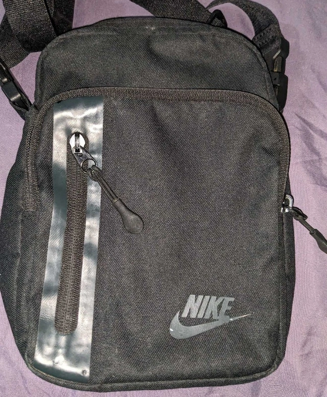 This is an original Nike crossbody bag, designed in a compact size that comfortably fits everyday essentials. Made from durable polyester with a sleek all-black finish, it features multiple secure compartments and a detachable adjustable shoulder strap for versatile use. Pickup Dufferin and lappin. For Sale By: Owner