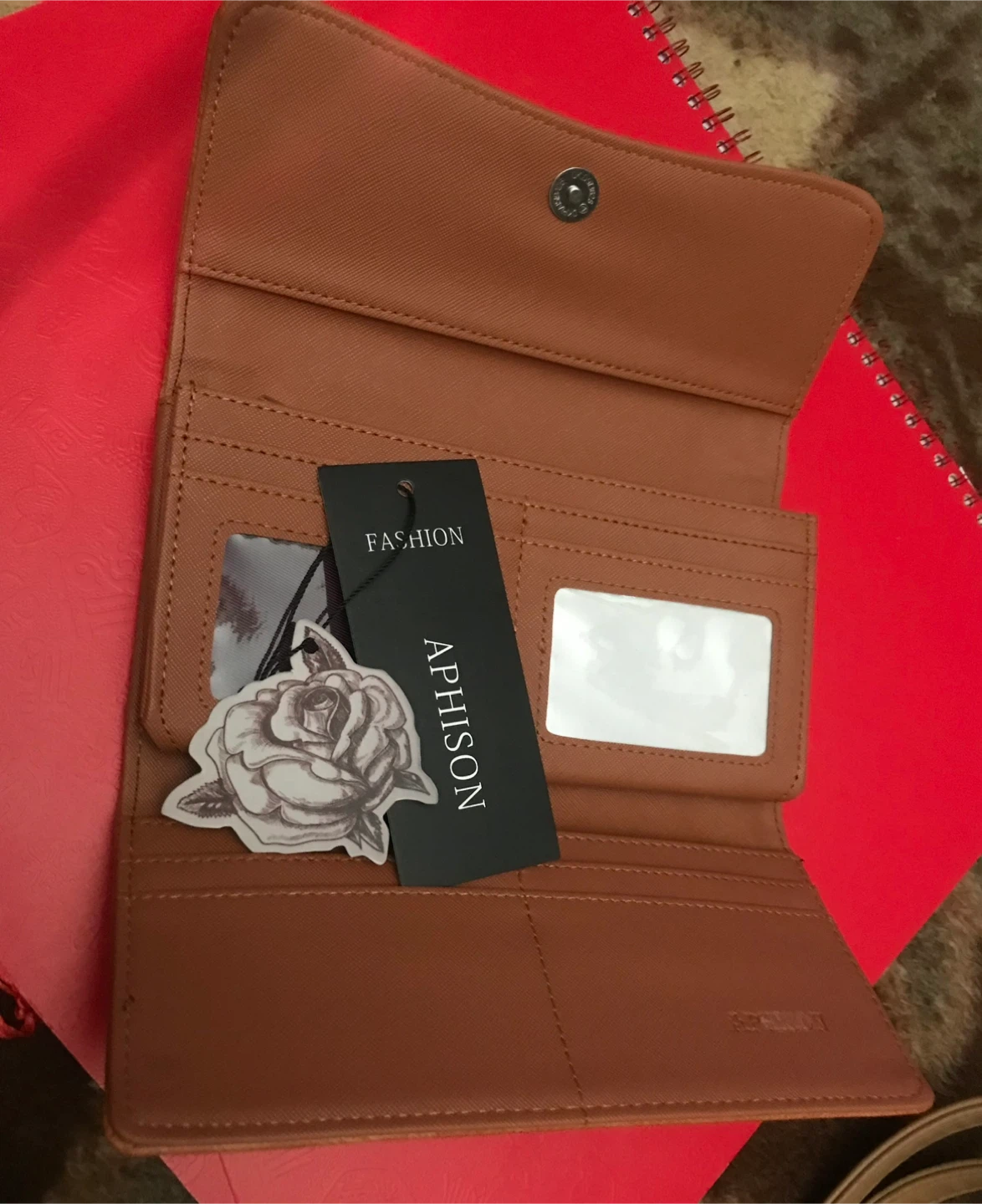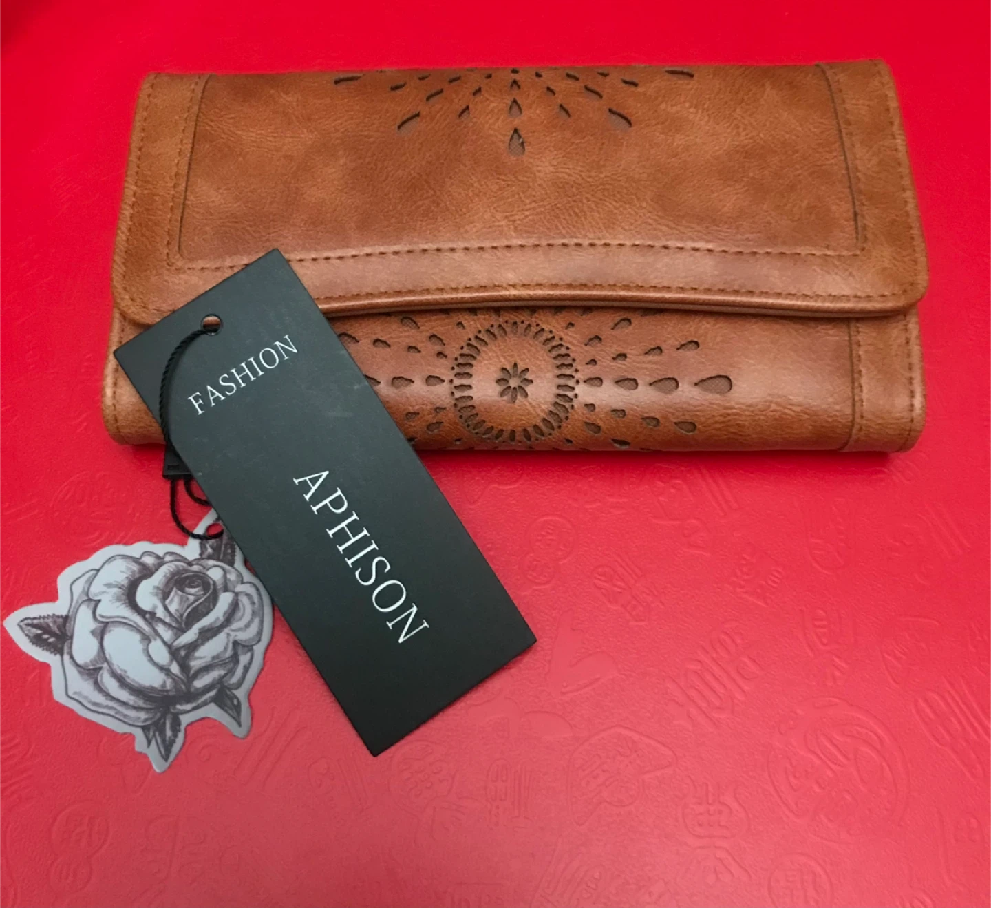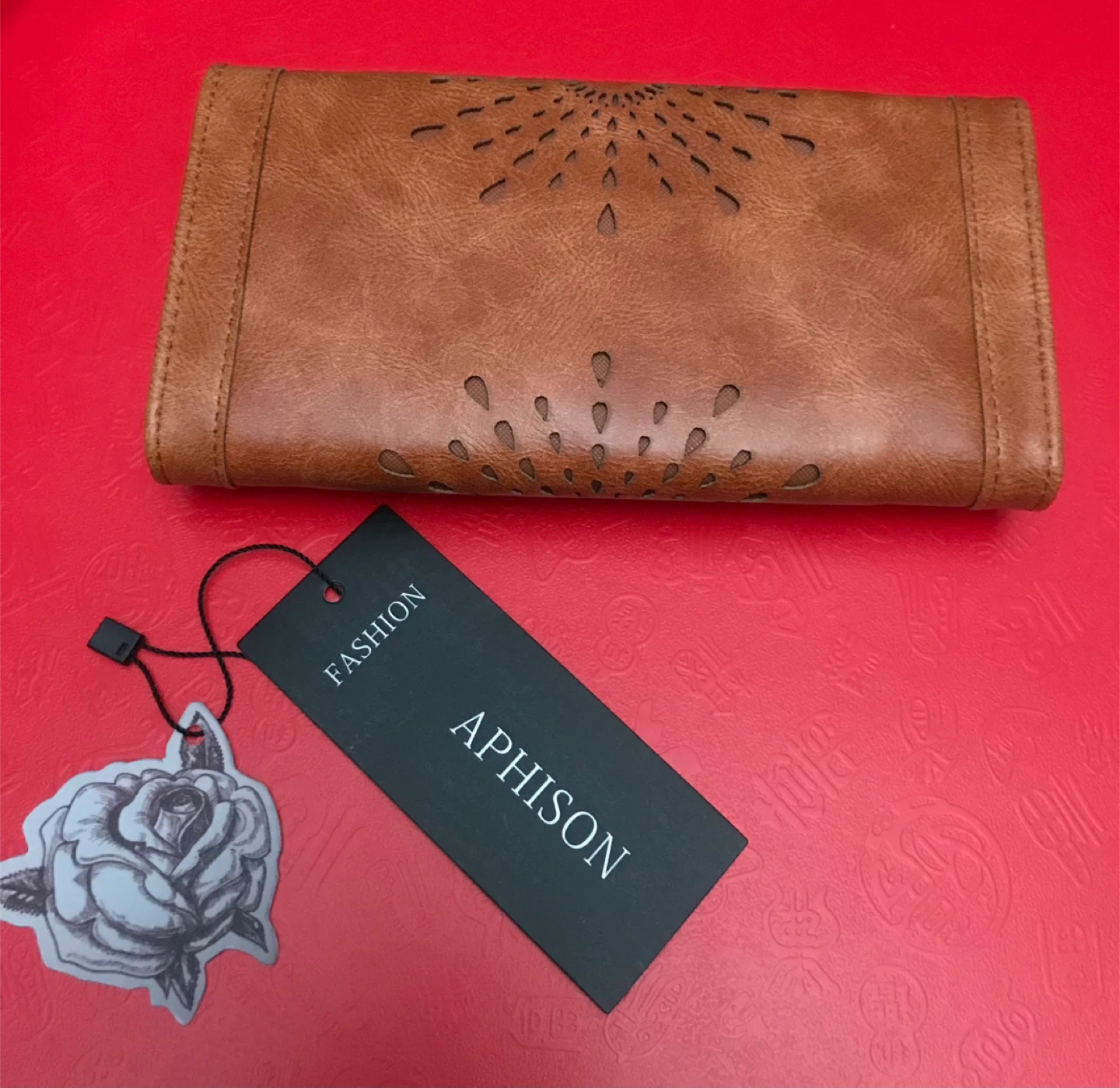 Selling a brand new Aphison wallet! It's a lovely brown colour and still has the tags attached. The wallet has a unique cut-out design on the exterior and plenty of space inside for cards and cash. Perfect for everyday use or as a gift!