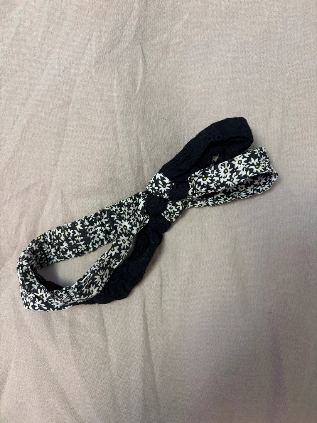 Cute headband with a floral pattern on one side and black on the other. Perfect for keeping your hair back in style!