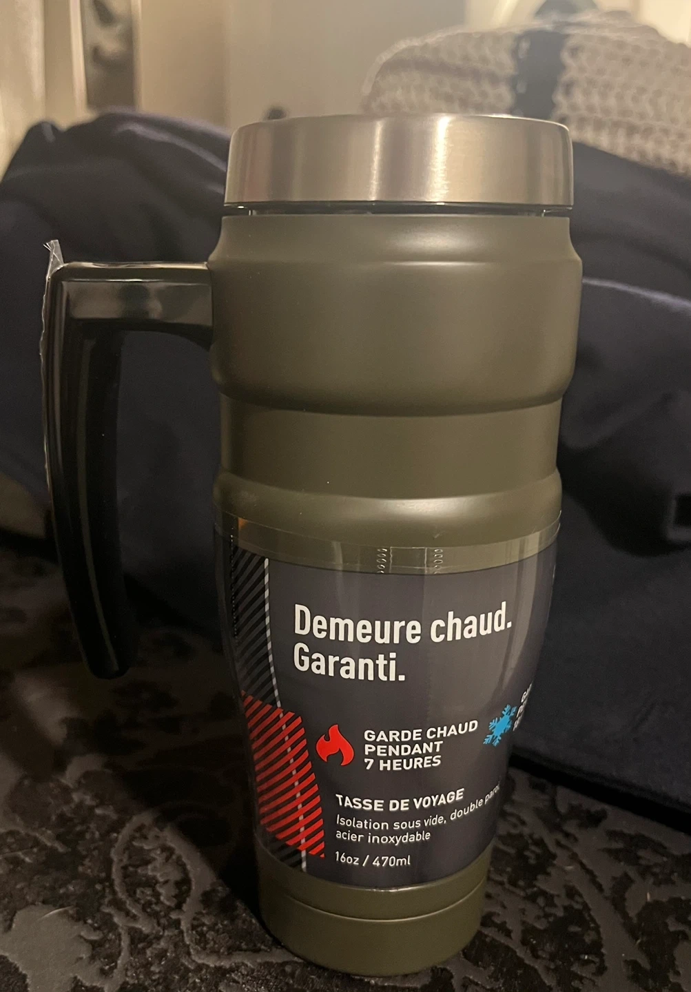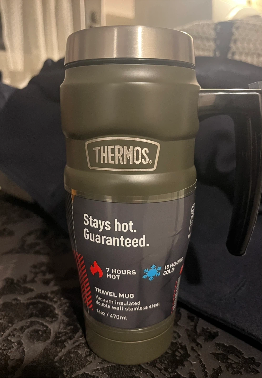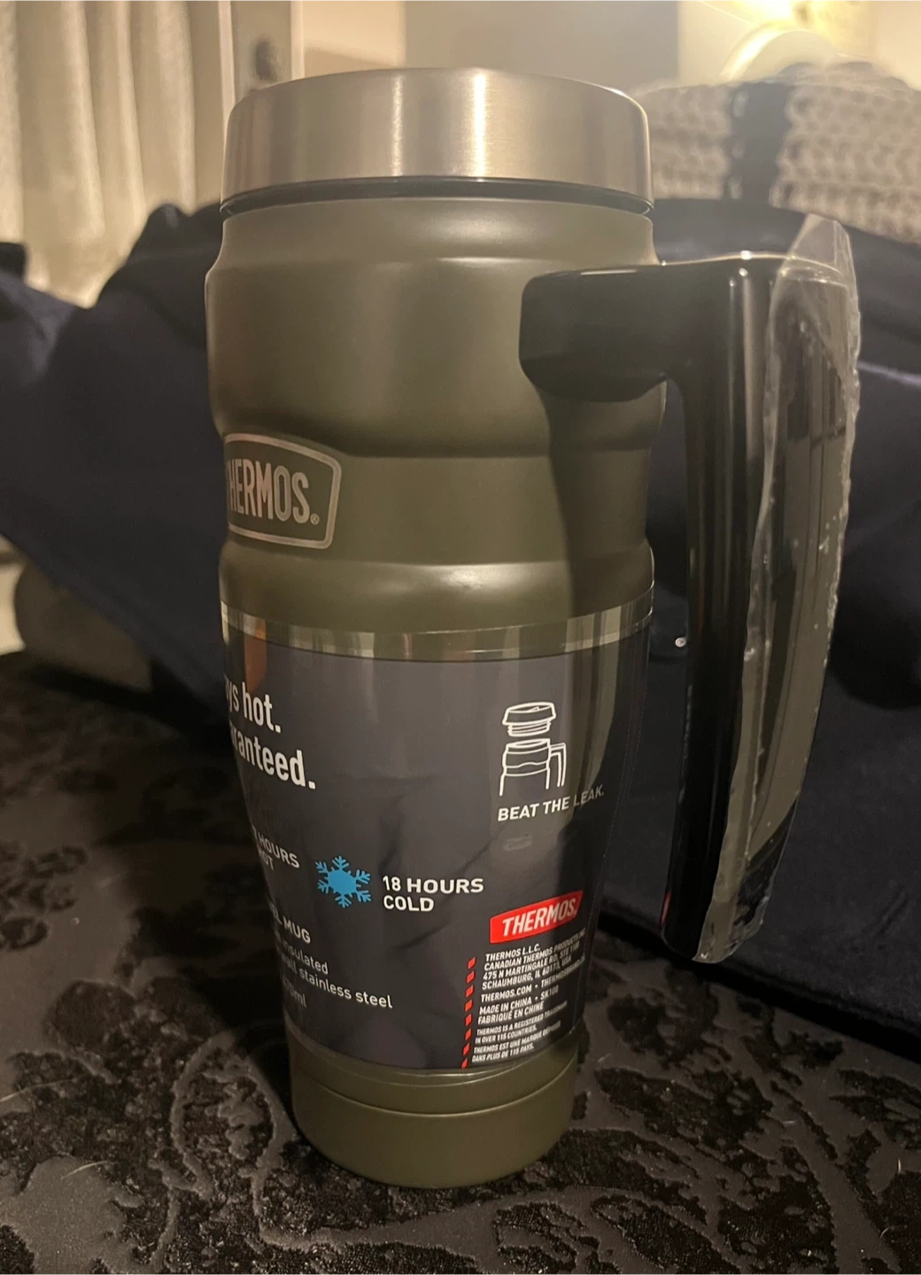 470ml great quality, hot and cold. Elegant Forest Green colour. Vacuum insulated. Double walk stainless steel.