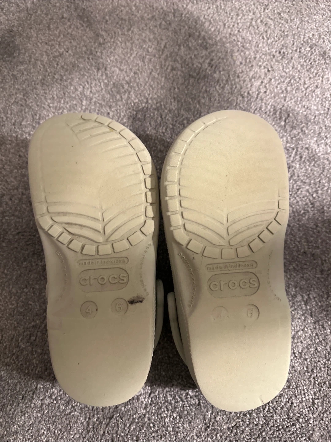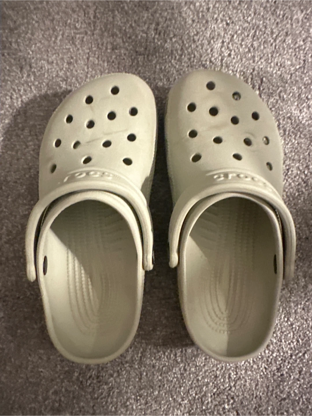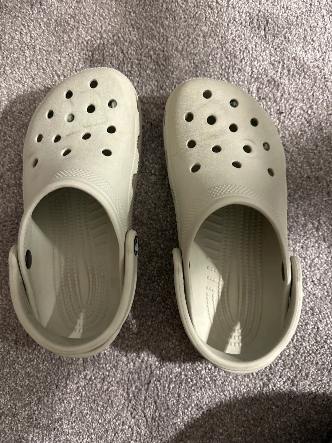 Selling a pair of Crocs classic clogs in size 6. They're in okay condition and ready for a new owner! The bottom will be pretty used
