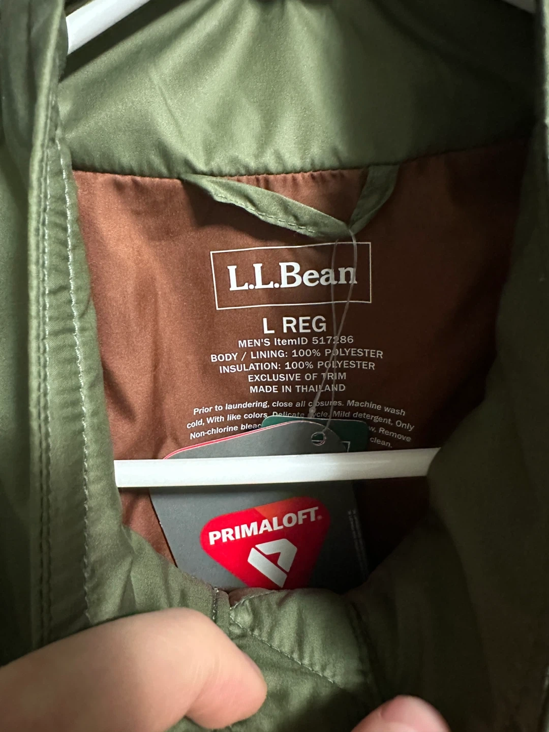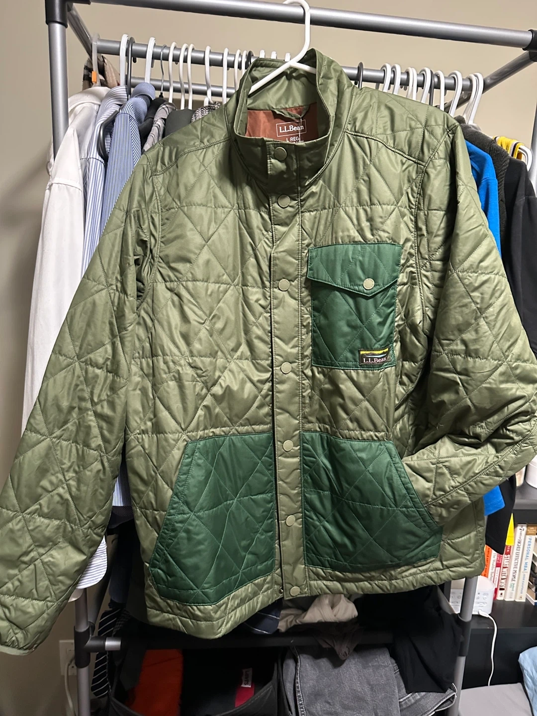 Men’s L.L. Bean Katahdin insulated jacket, size Large (regular fit) in olive green.