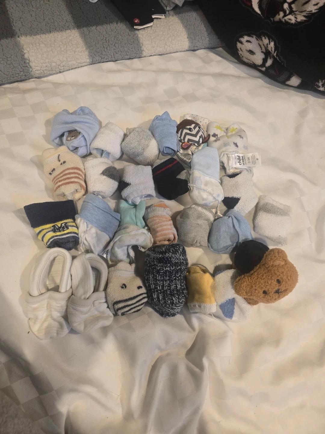 A collection of baby socks and booties, perfect for little ones aged 0-3 months! There are a variety of colours and designs, including some adorable little booties. All in great condition and ready for a new baby! $10
