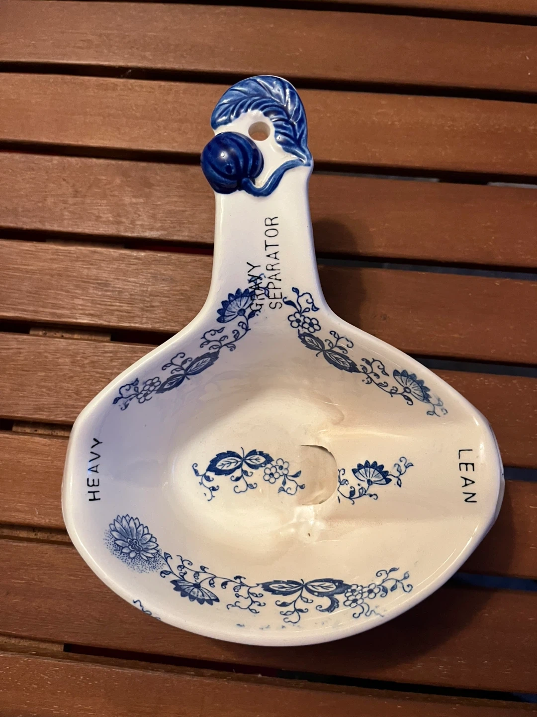Selling a vintage Blue Onion heavy/lean separator. It's in good condition, perfect for adding a touch of classic charm to your kitchen. Has some discolouration on the bottom from use.