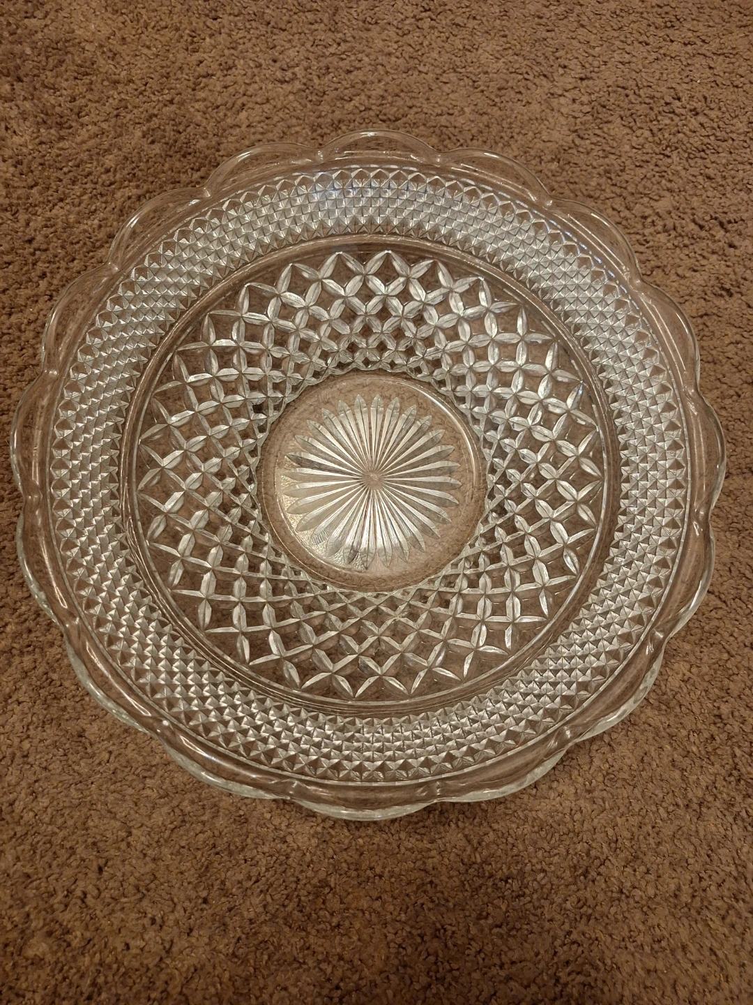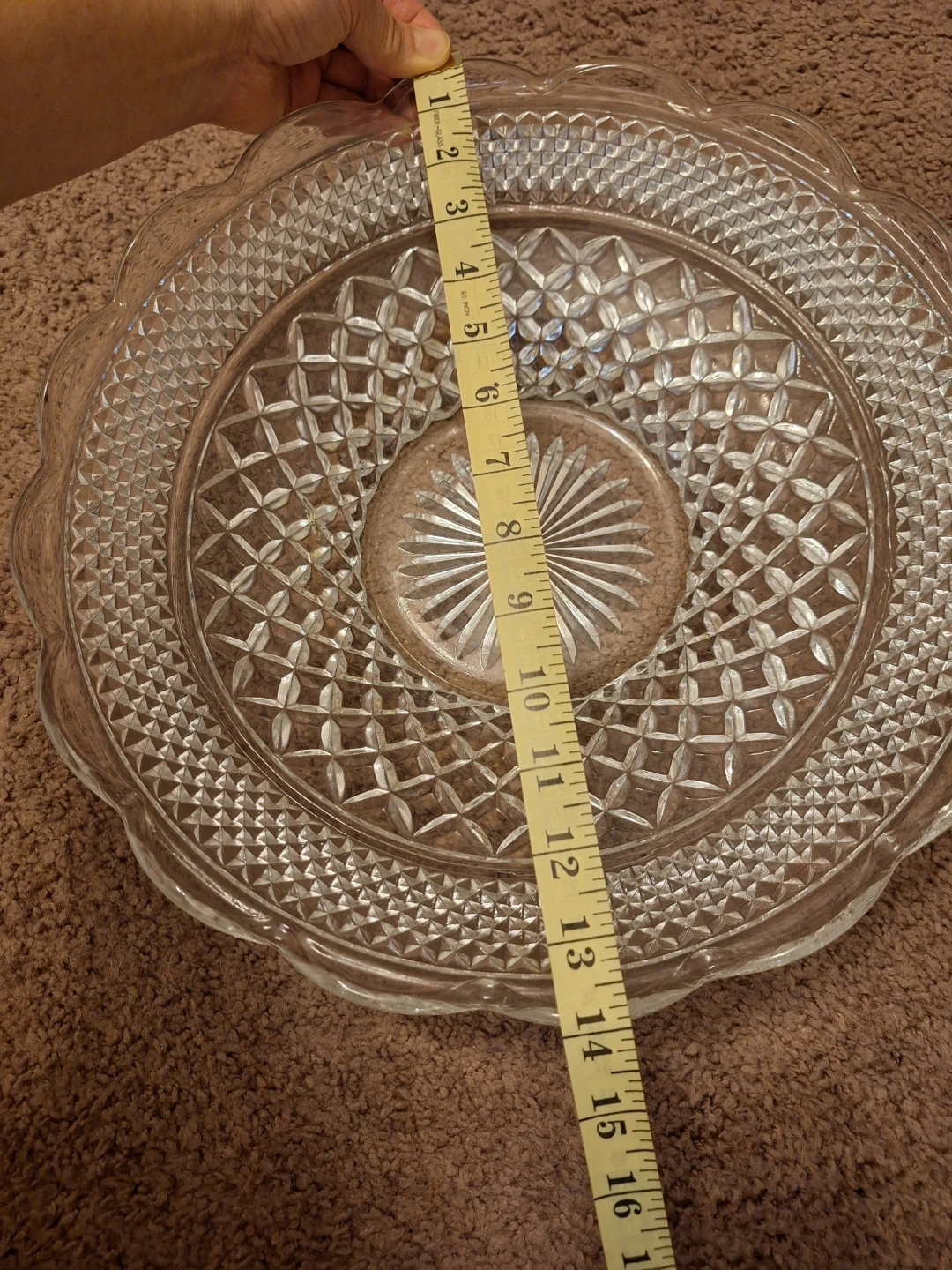 Selling a pretty clear glass serving platter. The diameter is about 14inches. It's in great shape and ready to use for your next gathering! Pickup only