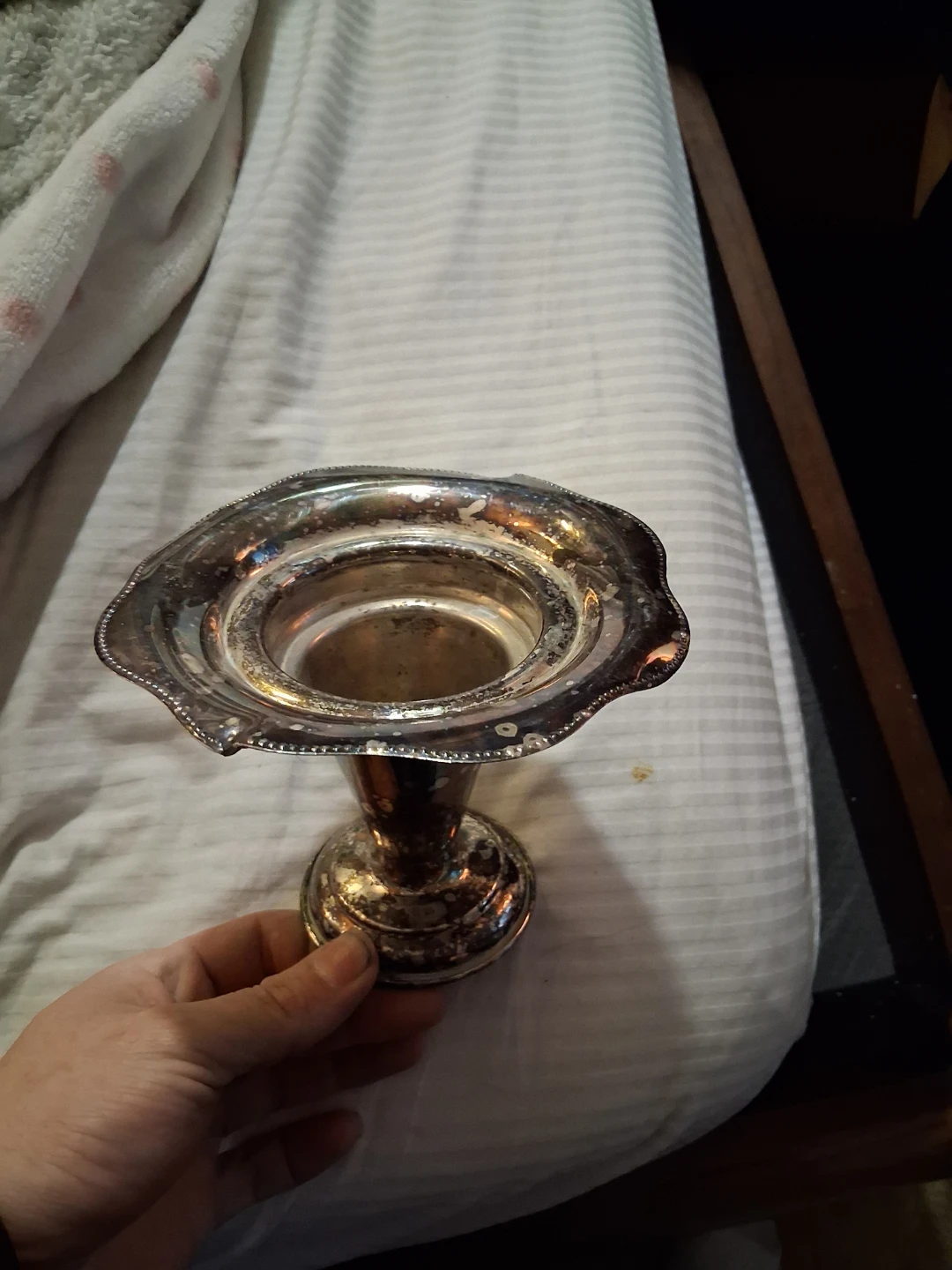 Selling a vintage Viking Plate silver plated vase. It shows some signs of wear and tarnish, adding to its antique charm! Perfect for adding a touch of elegance to your home decor