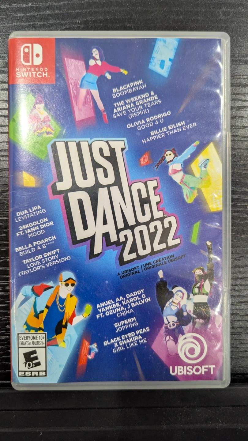 Selling Just Dance 2022 for Nintendo Switch. This game features a bunch of popular songs to groove to, including tracks from Dua Lipa, Taylor Swift, Billie Eilish, and more!