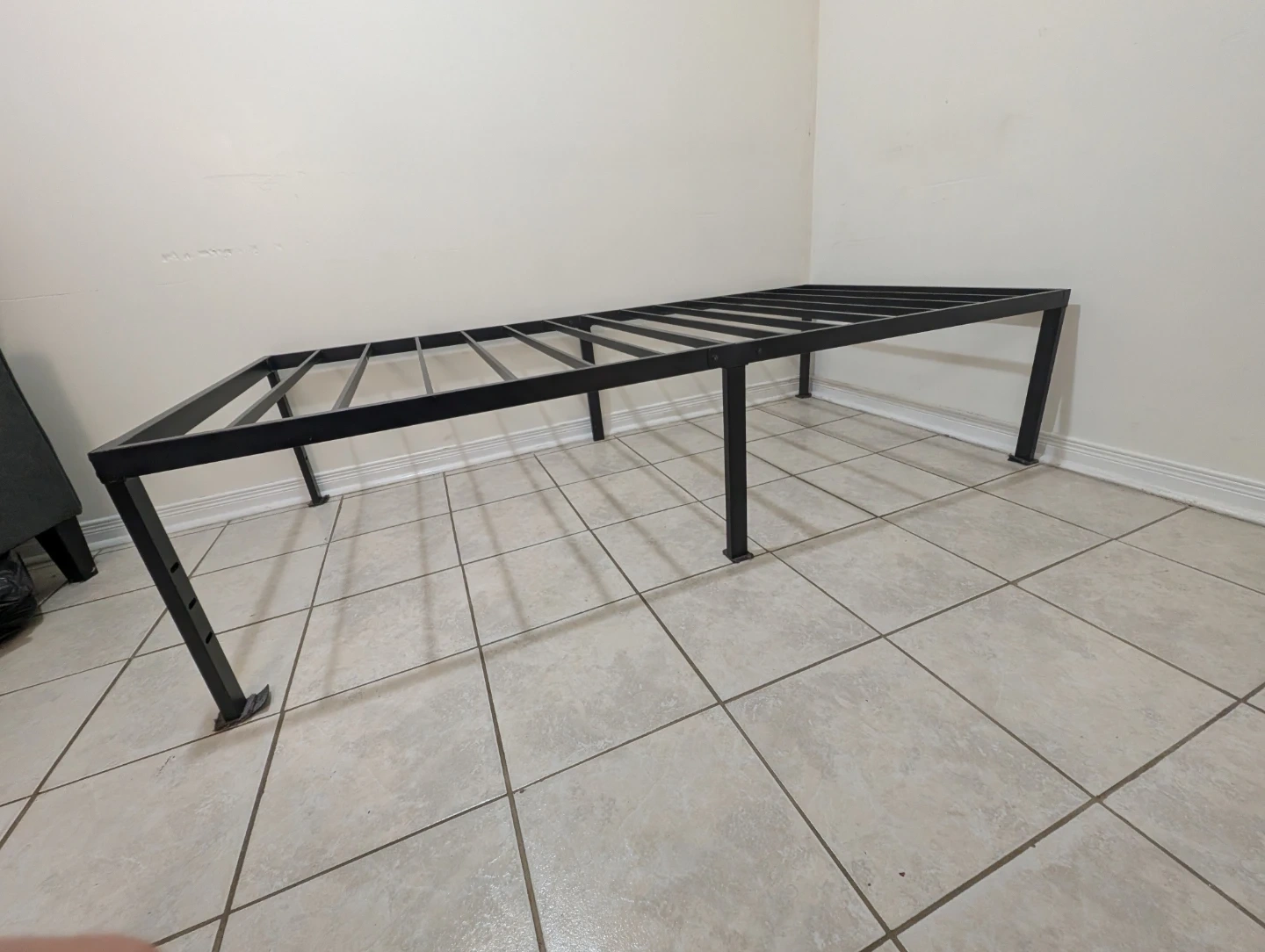 Selling a sturdy black metal bed frame! It's in great shape and ready to support your mattress. Perfect for a single or twin-sized bed. Get in touch if you're interested.